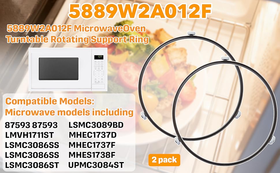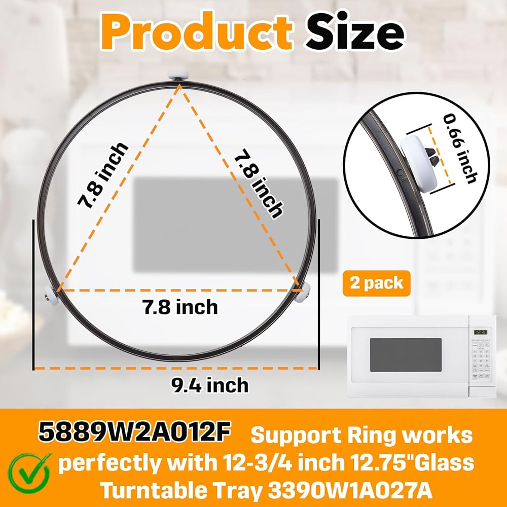 2 حزمة من حلقة دعم القرص الدوار للميكروويف مقاس 9.5 بوصة، تناسب صينية زجاجية مقاس 12.75 بوصة، بديلة لـ 5889W2A012F 5889W2A012D 5889W2A012P، متوافقة مع أجهزة الميكروويف MVH1670ST LMV1680BB