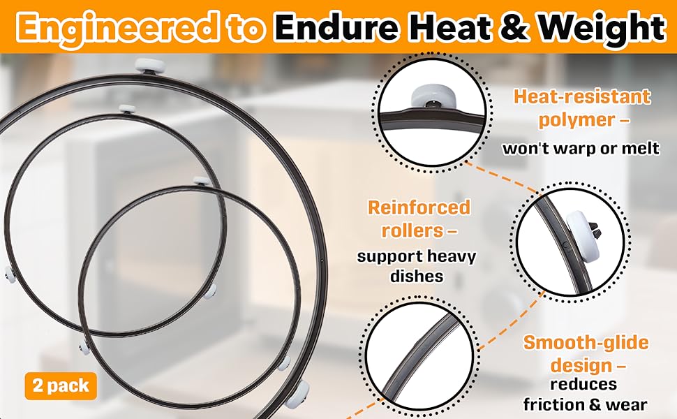 تصميم متين وهادئ: مصنوعة من مواد مقاومة لدرجات الحرارة العالية، توفر حلقة عجلة الميكروويف المتينة هذه قدرة تحمل. يعمل التصميم الأمثل للحلقة الدوارة للميكروويف على تقليل الضوضاء، مما يضمن التشغيل الهادئ
