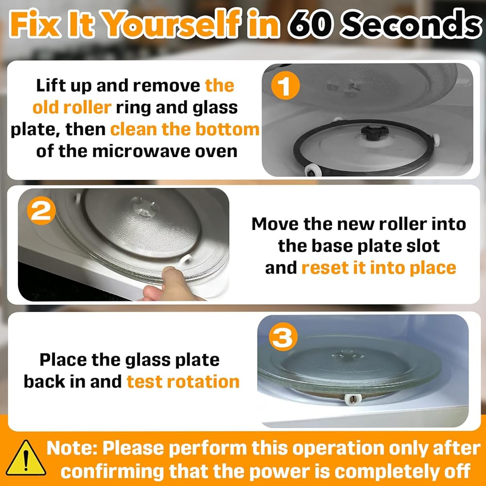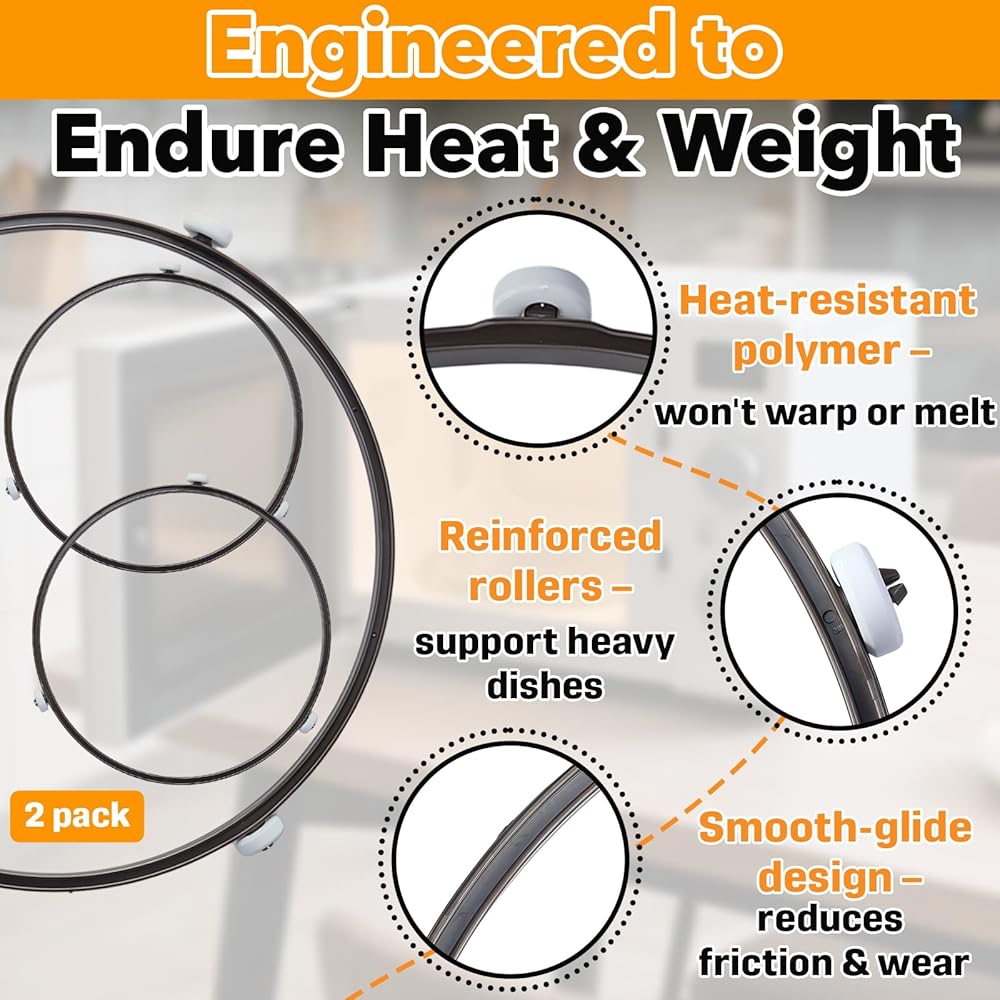 قيمة العبوة المكونة من قطعتين: تتضمن هذه المجموعة قطعتين بديلتين للحلقة الدوارة في الميكروويف. تعمل كحلقات دوارة عالمية لدعم القرص الدوار للميكروويف، وتضمن العبوة المكونة من قطعتين توفر قطعة احتياطية دائمًا عند الحاجة