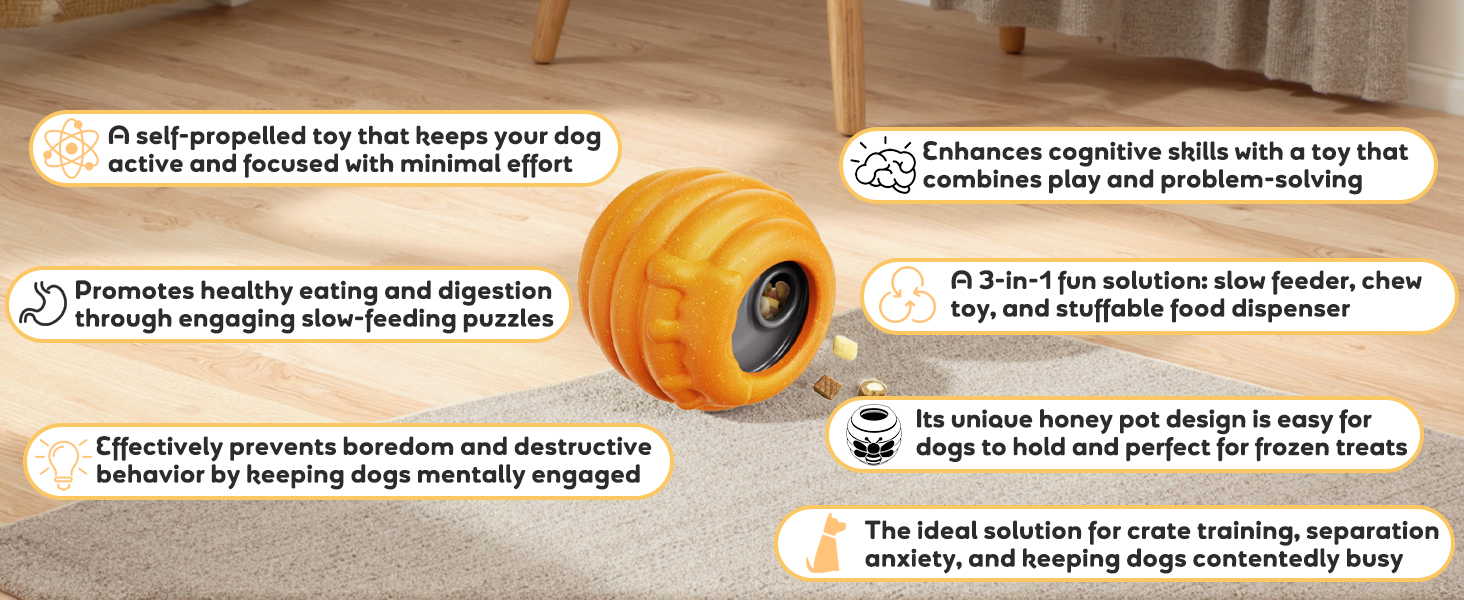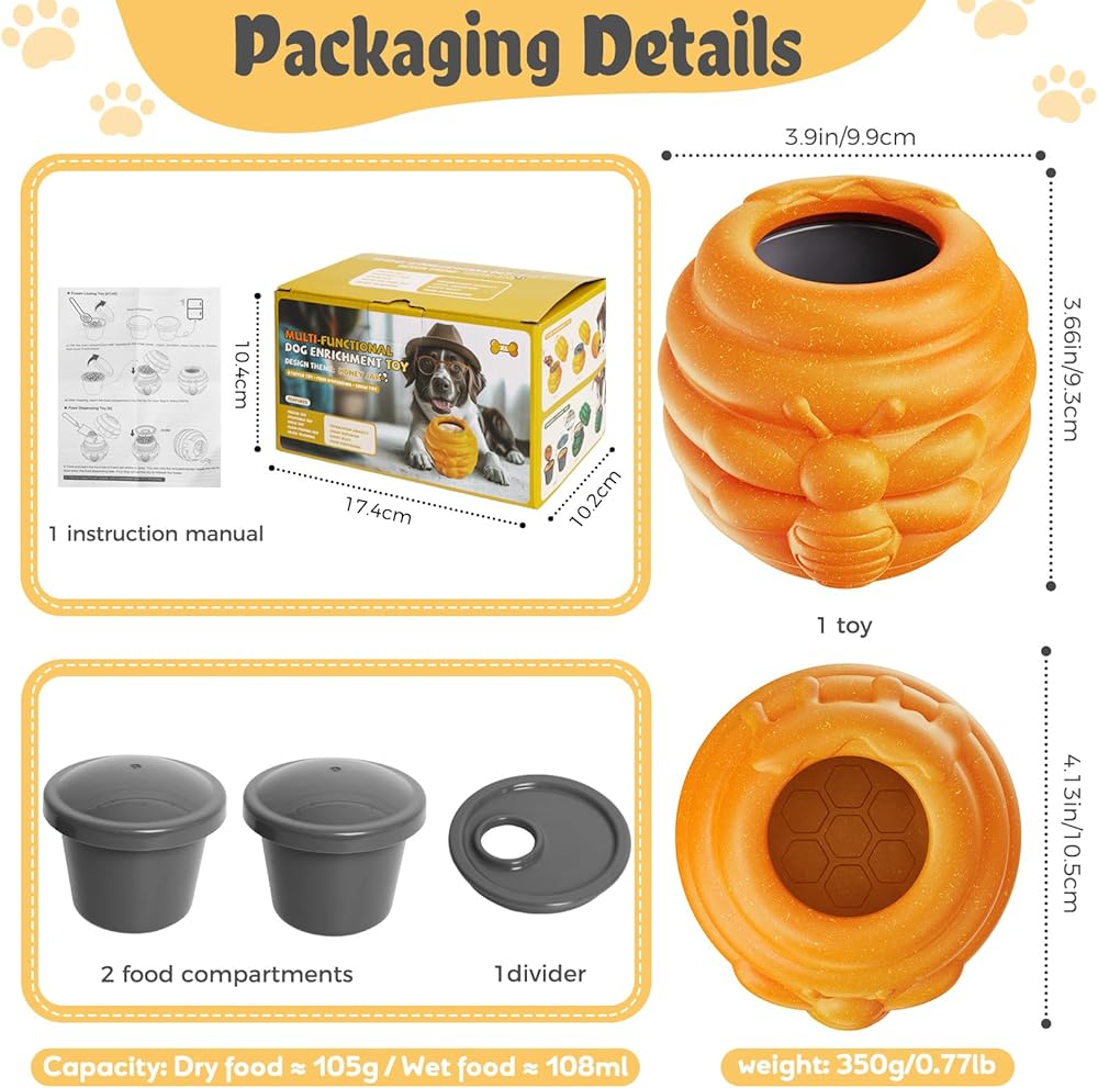 [تصميم مريح يركز على السلامة] توفر الصورة الظلية الفريدة لوعاء العسل، والمزينة بنمط النحل المرتفع، نقاط قبضة طبيعية لمخالب الكلب لتثبيت اللعبة بثبات أثناء الاستخدام الطويل. تم تطوير هذا الشكل المريح خصيصًا لتوفير تجربة ترفيه ذاتية آمنة، مما يوفر بديلاً أكثر أمانًا للألعاب الكروية القياسية مع الحفاظ على مستويات مشاركة عالية لمختلف السلالات.