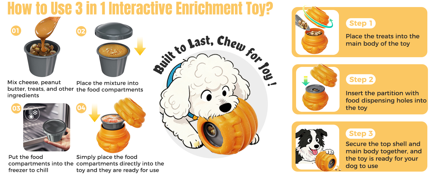 [نظام تعبئة وتجميد مبسط] تم تصميم هذا المنتج للتخلص من الإزعاج المرتبط بألعاب الحشو التقليدية، ويتميز بنظام أكواب مبسط قابل للإزالة. يمكن لأصحاب الحيوانات الأليفة ملء الحاويات المخصصة للطعام بزبدة الفول السوداني أو الزبادي أو المهروس وتجميدها بشكل مستقل وإدخالها مباشرة في اللعبة. يضمن هذا التصميم عملية تغذية نظيفة ويوفر مكافأة تبريد طويلة الأمد دون الحاجة إلى القولبة المعقدة.