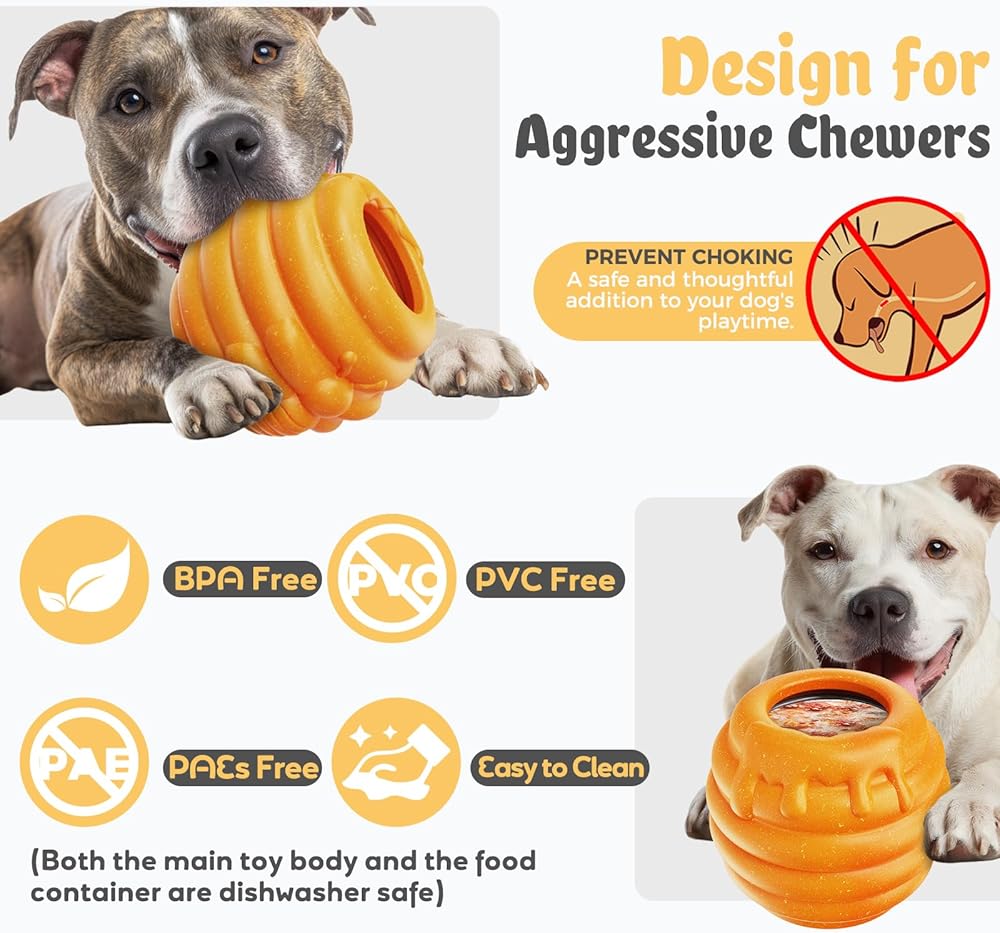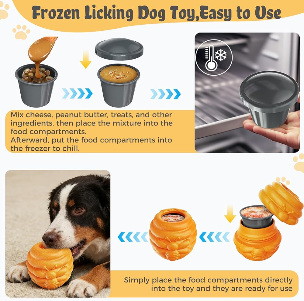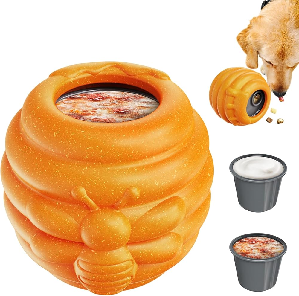 لعبة إثراء الكلاب للمضغ العدواني - لعبة ألغاز تفاعلية للكلاب من أجل الملل - موزع حلوى وعاء العسل من النايلون المتين ومغذي بطيء - لعبة لعق مجمدة مع أكواب قابلة للإزالة، برتقالي
