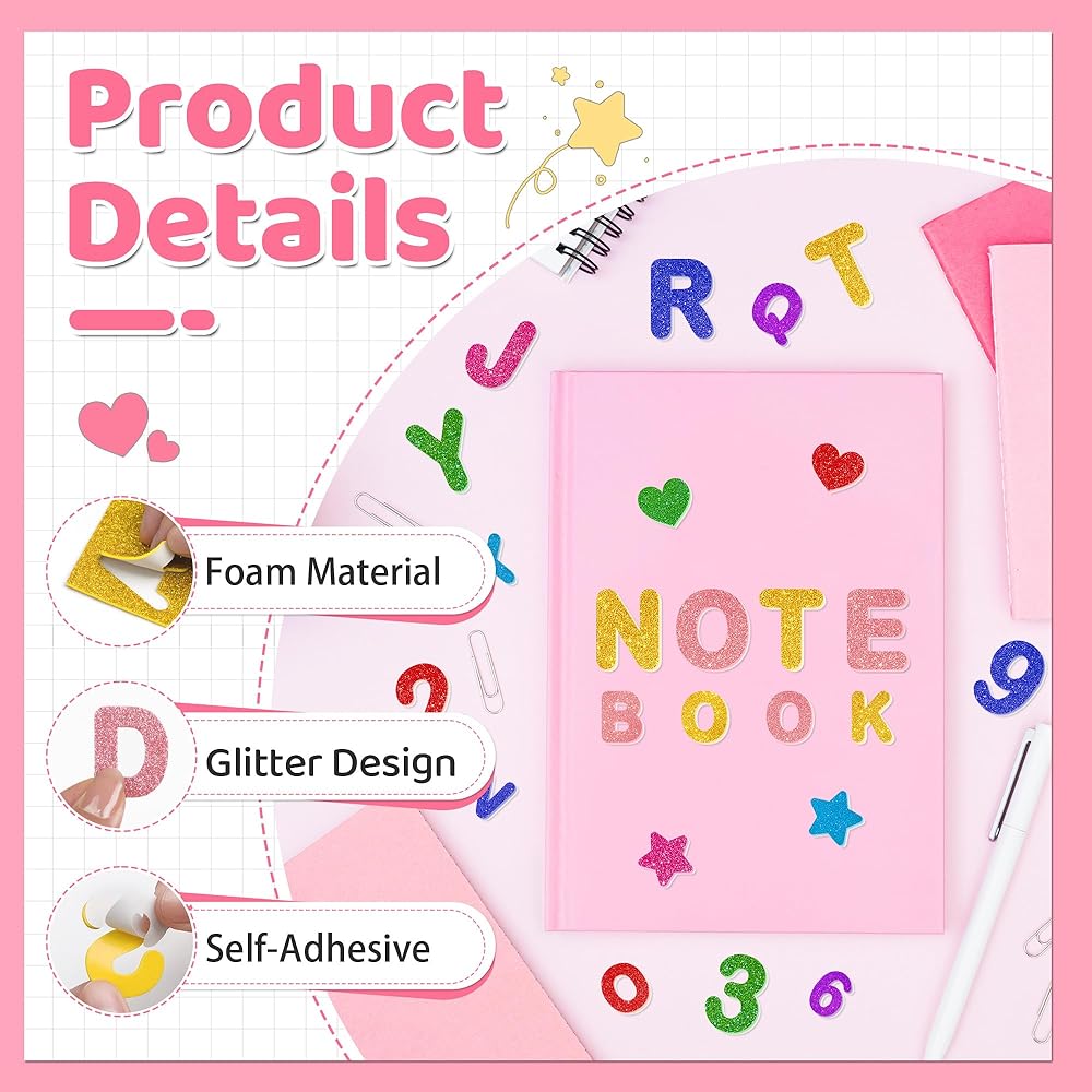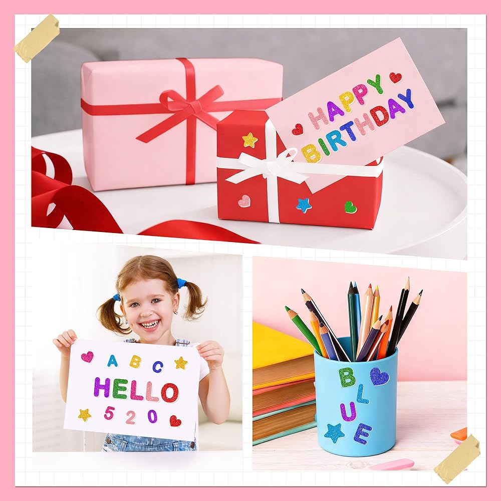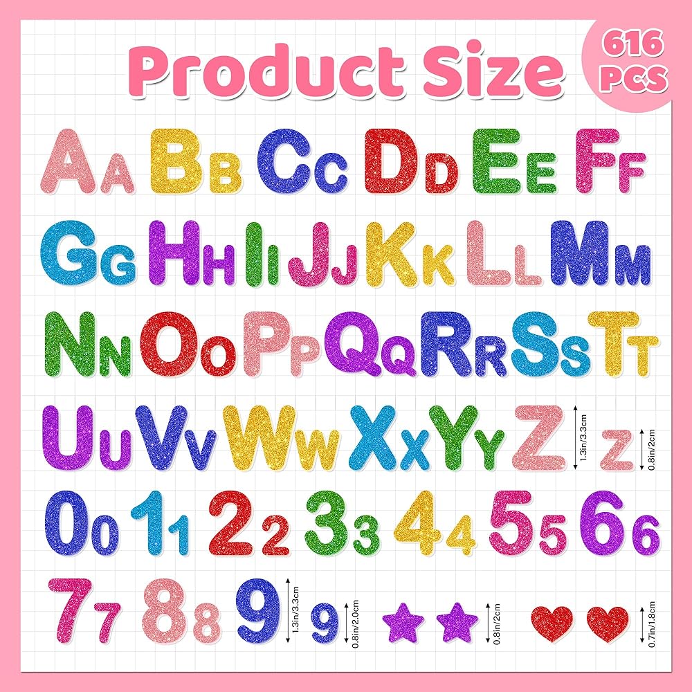 616 قطعة من ملصقات الحروف، ملصقات إسفنجية لامعة، رقم أبجدي 1 بوصة، ملصق حروف ABC على شكل قلب نجمة إسفنجية ذاتية اللصق للأطفال DIY أعمال فنية يدوية، مستلزمات سجل القصاصات، مشروع المدرسة، ديكور الفصل الدراسي، 8 ألوان