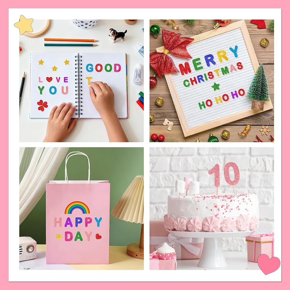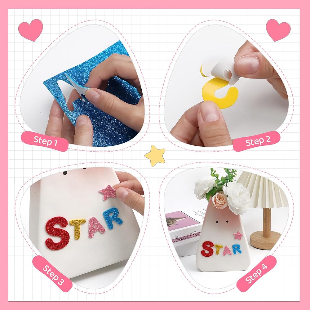 • مادة إسفنجية EVA متينة ممتازة: مصنوعة من إسفنج EVA عالي الجودة وناعم ومتين، هذه الملصقات مقاومة للتمزق وتحافظ على شكلها حتى مع الاستخدام المتكرر. يضيف اللمسة النهائية اللامعة لمسة سحرية ولافتة للنظر، مما يجعل كل حرفة أو صفحة سجل القصاصات أو ديكور الفصل الدراسي مميزًا بلمعان متألق.
