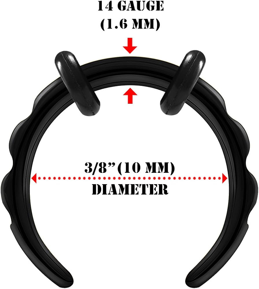 • ستستلم - زوج من مقاس 12 جم 2 مم 3/8 (10 مم) من الفولاذ الجراحي المؤكسد الأسود (حلقات دائرية سوداء مزدوجة مطلية بمادة PVD).