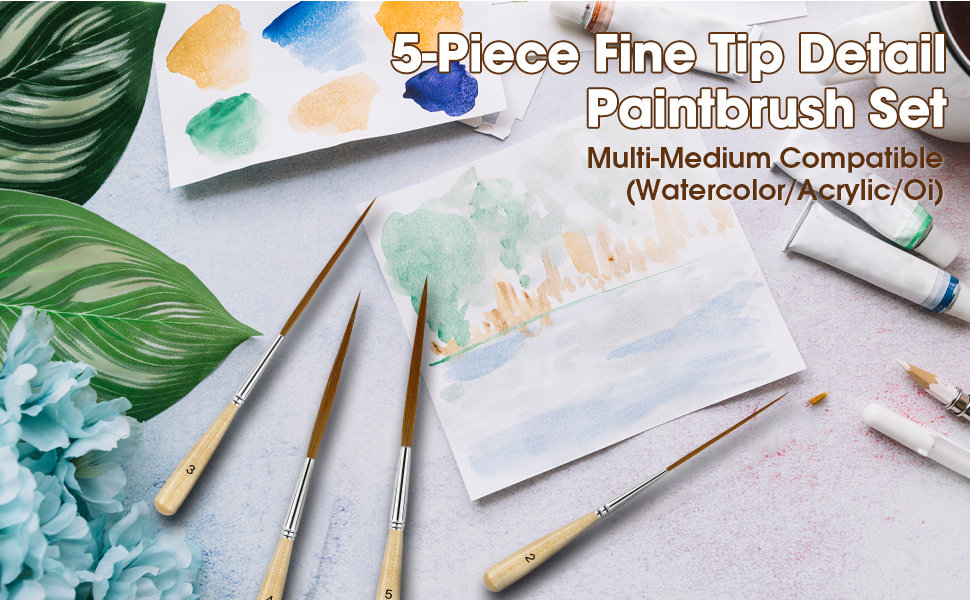 🎯 جاهز بالكامل - مجموعة واحدة للألوان المائية والأكريليك والمزيد - مجموعة فرش الطلاء التفصيلية هذه المكونة من 5 قطع تعمل كالسحر مع فرش الألوان المائية الاحترافية، وفرش الطلاء بالألوان المائية، وفرش الطلاء الأكريليك، والدهانات الزيتية - لا حاجة لشراء مجموعات منفصلة لوسائط مختلفة. بل إنها رائعة كنسخة احتياطية لفرشاة الممسحة الخاصة بك من أجل طلاء الأكريليك. متعددة الاستخدامات بما فيه الكفاية لمشاريع الفرشاة المخططة، والرسوم التوضيحية النباتية، والرسومات المعمارية، والخطوط العريضة للتمرير، تحتوي فرش الخطوط الملاحية المنتظمة هذه على جميع مزايا فرشاة الطلاء ذات الرأس الرفيع للتعامل مع كل مهمة تفصيلية.