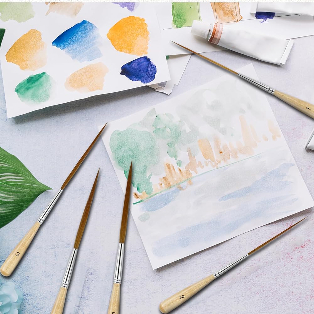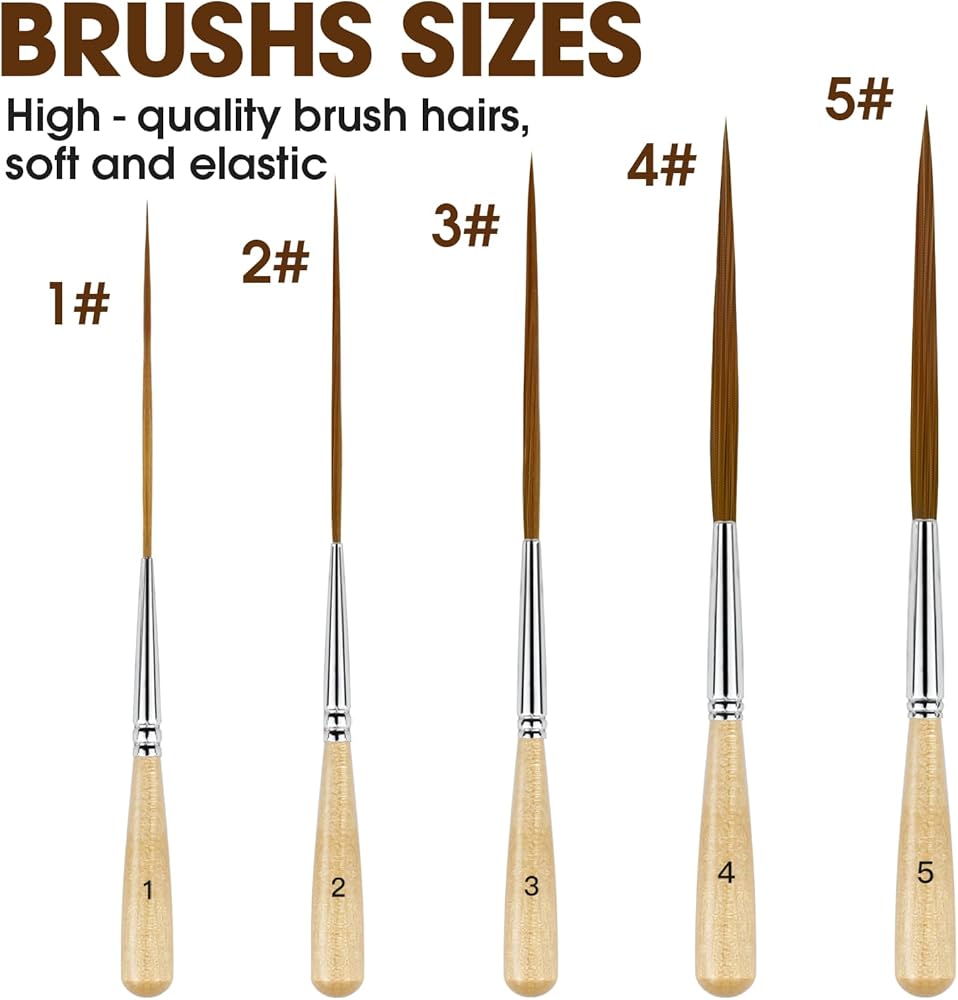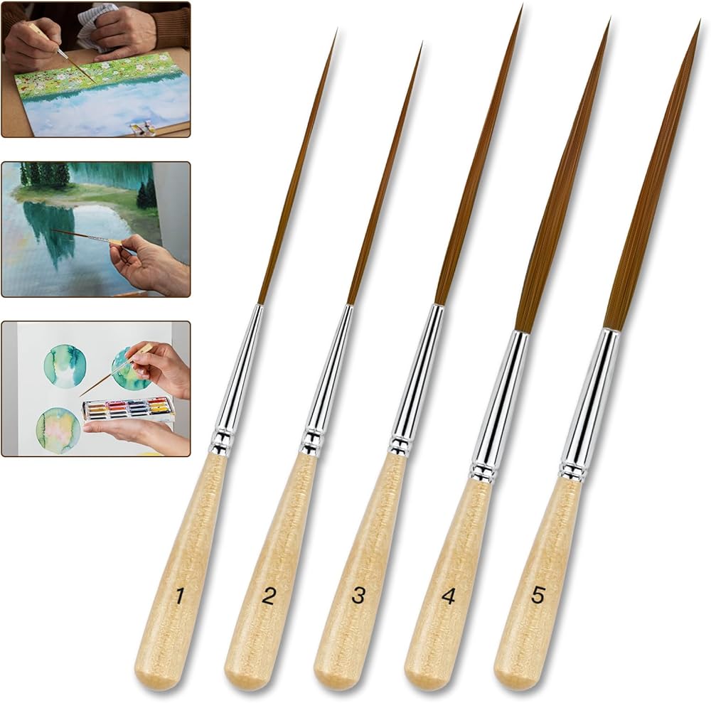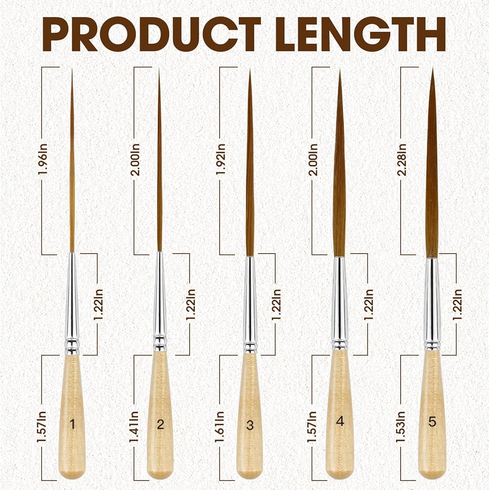 5 قطع من فرش تحديد العيون الطويلة - فرش طلاء بتفاصيل شعر أذن الثور ذات نقاط رفيعة طويلة جدًا | مقلمة، مخطط التمرير للألوان المائية والأكريليك والزيت والفنانين المحترفين