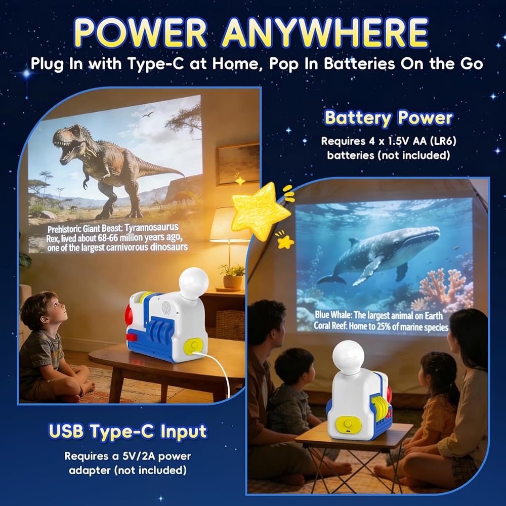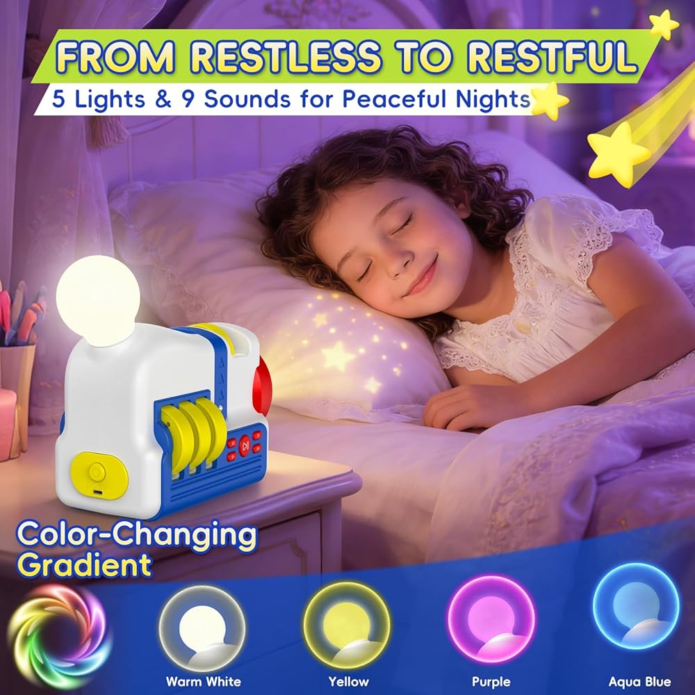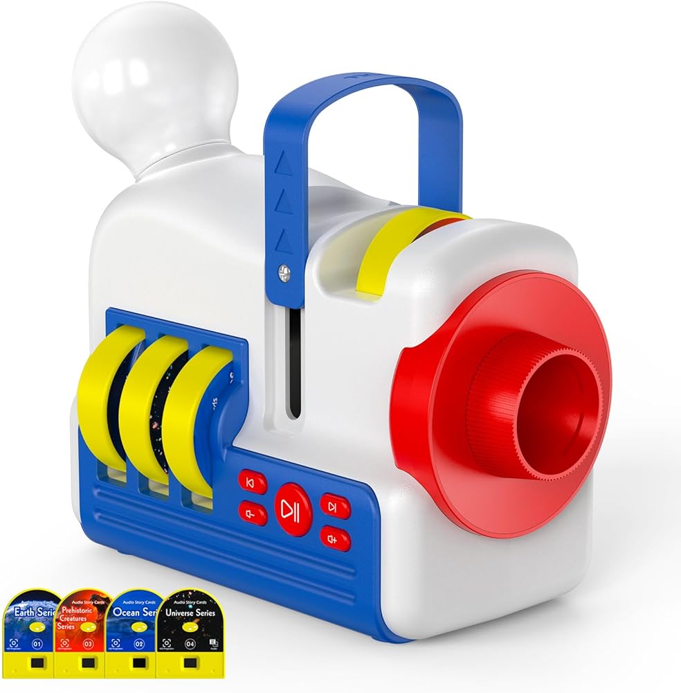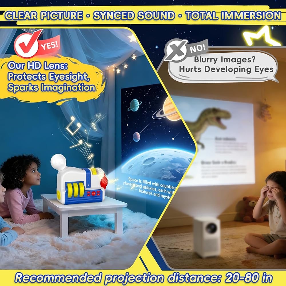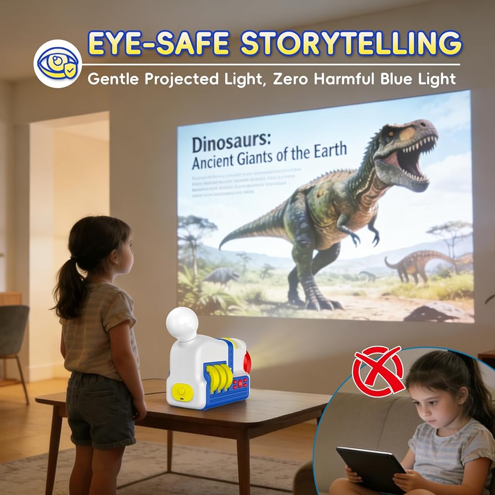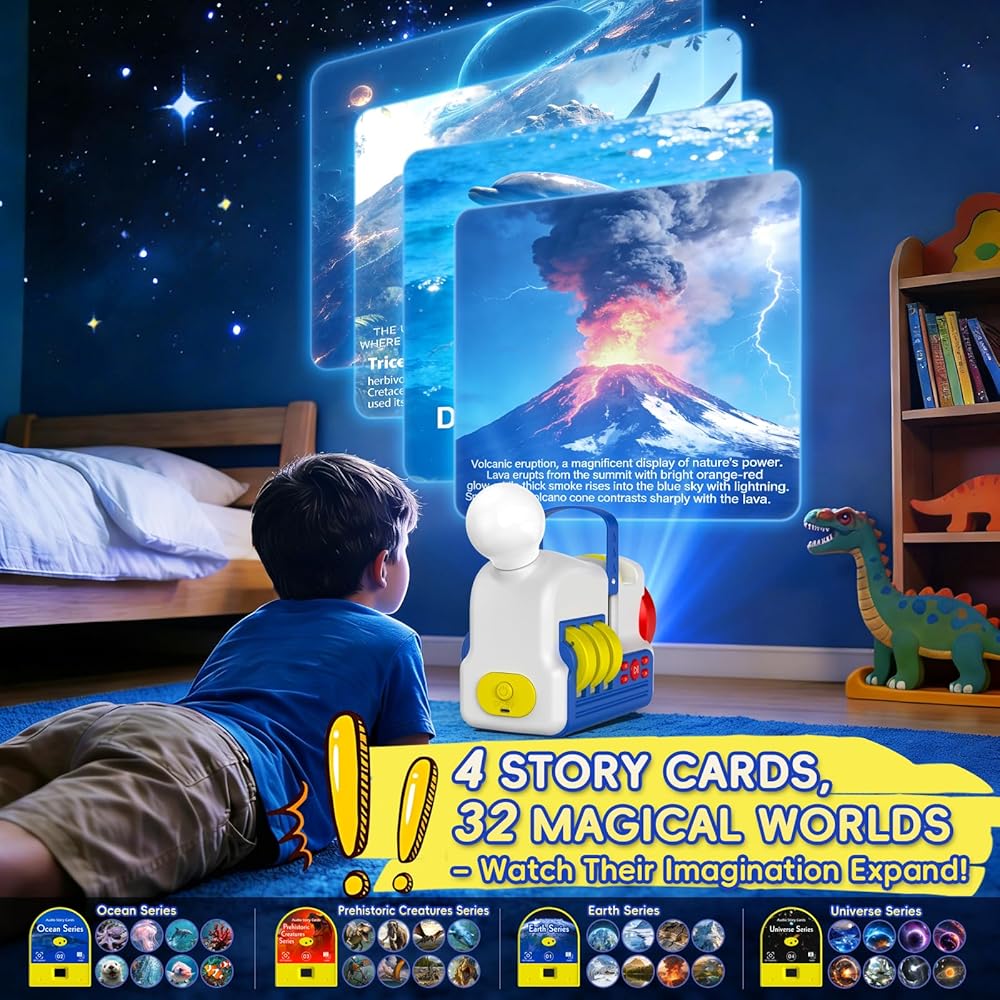 جهاز عرض القصص للأطفال، آلة أحلام القصص التعليمية مع 32 قصة و4 خراطيش علمية، كتب صوتية للأطفال الصغار، ضوء ليلي وضوضاء بيضاء، مشغل قصص قبل النوم