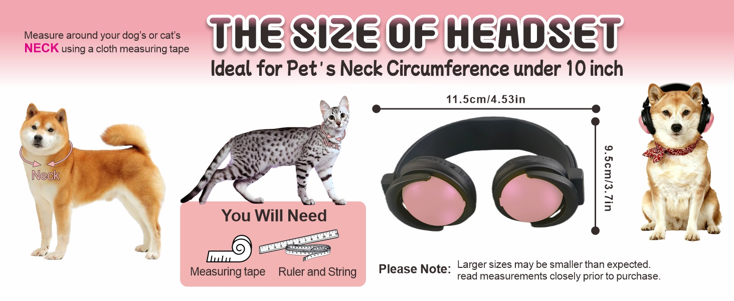 [دليل الملاءمة] تم تصميم سماعات الرأس للحيوانات الأليفة هذه لمعظم الحيوانات الأليفة الصغيرة التي يقل محيط رأسها أو رقبتها عن 10 بوصات. لضمان الملاءمة المناسبة، يرجى قياس رقبة حيوانك الأليف قبل الشراء. نوصي باستخدامها للسلالات الصغيرة مثل الشيواوا، ويوركشاير تيريرز، والمالطية، وديفون ريكس، وأورينتال قصيرة الشعر، وسنغابورا، التي يبلغ طولها عادةً أقل من 10 بوصات.