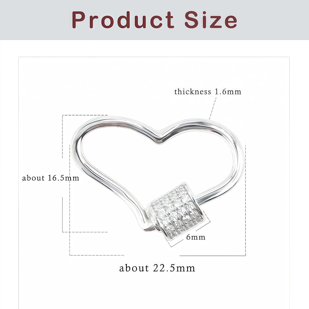 [Size&Package Reference] package includes 1 piece heart shape sterling silver carabiner clasp. About 16.5mm long, 22.5mm wide, thickness 1.6mm. Please check the pictures size and make sure it meets your need before placing an order, thank you.