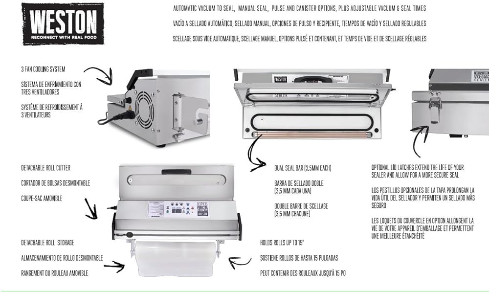 Weston 65-0901-w Pro-3500 ماكينة تفريغ الهواء من الدرجة التجارية، شريط 15 بوصة، من الفولاذ المقاوم للصدأ