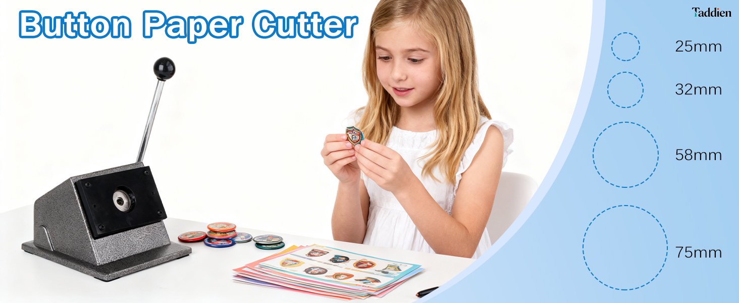 وظيفة الشارة والقطع: تعمل هذه الآلة على إنشاء شارات دائرية وقطع المواد مثل الورق والجلد وبطاقات PVC، مما يضمن قطعًا نظيفة وأشكالًا جيدة التكوين، وهو أمر ضروري لصنع الأزرار والمشروعات اليدوية.