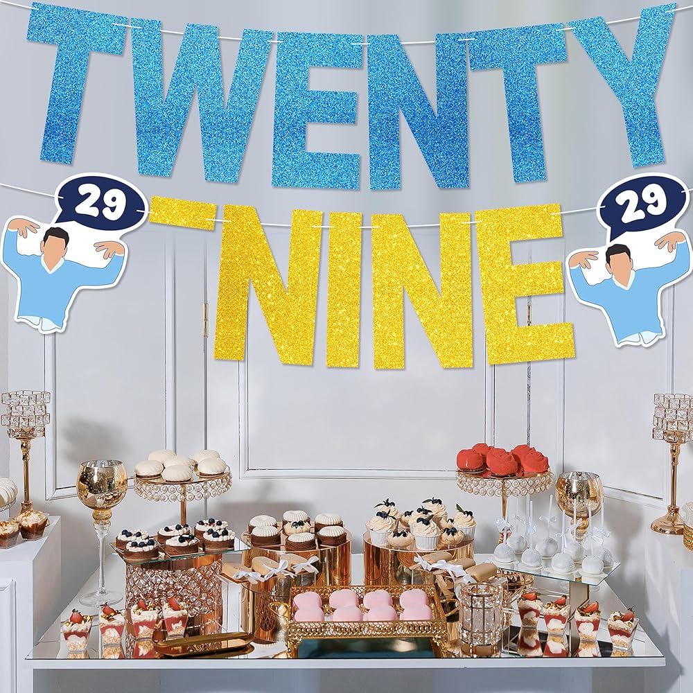 【مثالية لحفلة عيد ميلاد تسعة وعشرون】: تم تصميم اللافتة خصيصًا بعناصر متنوعة ستكون مثالية للاحتفال بعيد ميلادك الخاص وتضيف جوًا مضحكًا لديكورات حفلتك.