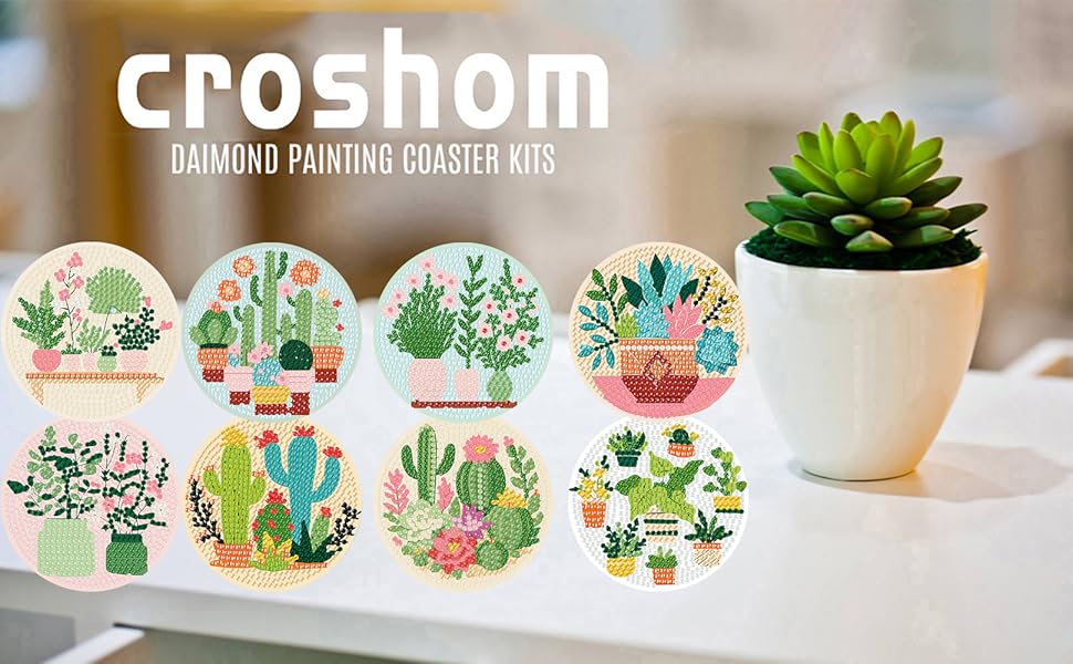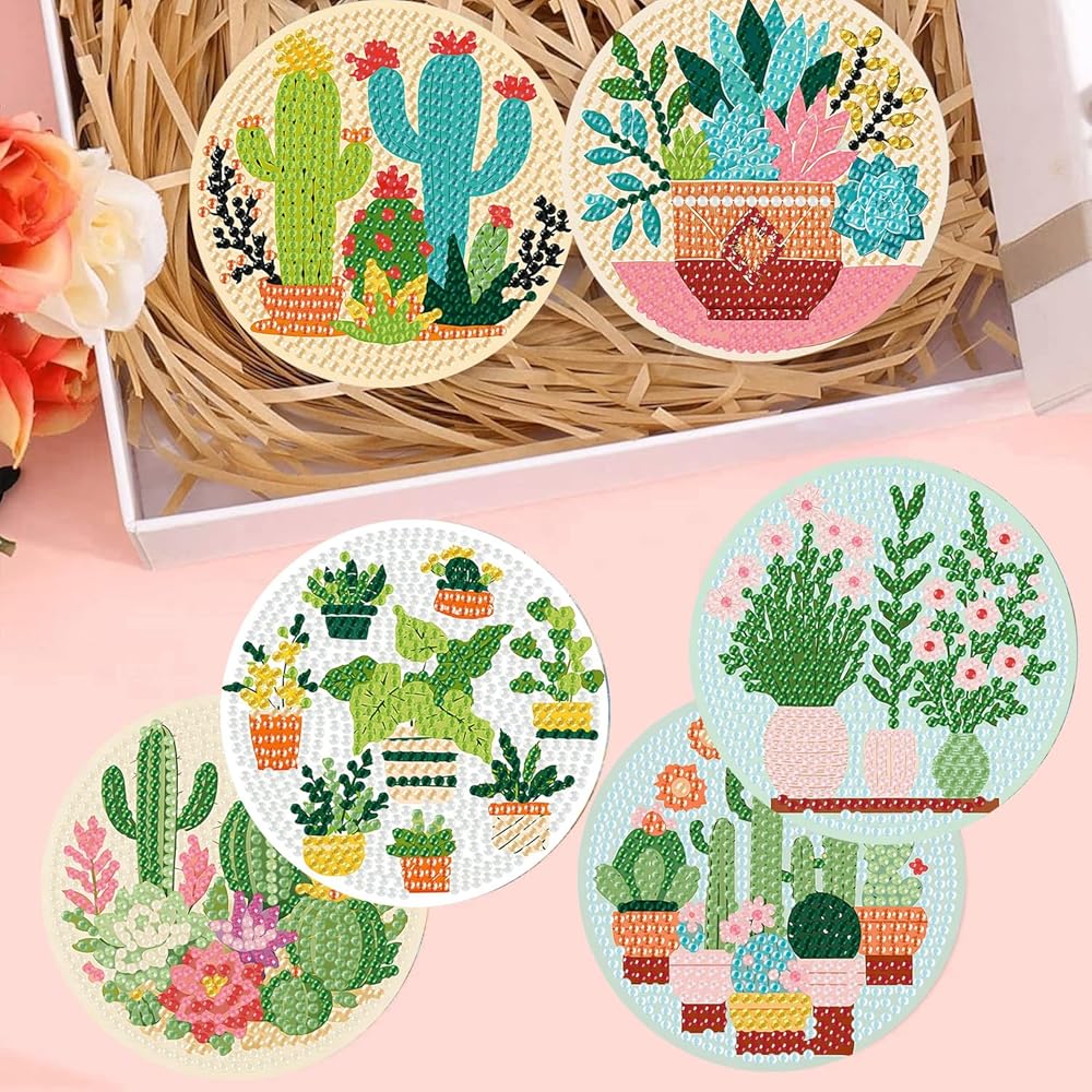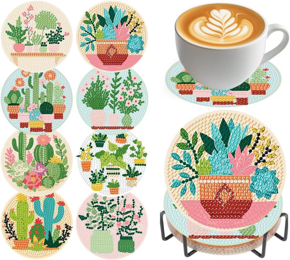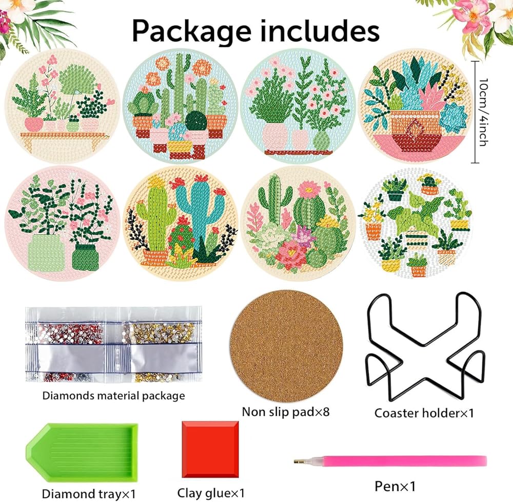 DIAMOND ART COASTERS KIT PACKAGE: You will receive 8 pcs of green plant diamond art painting coasters, 8 pcs of cork pads, 1 pc coaster holder, 1 set of colored diamonds, 1 pc clay glue, 1 pc pen, and 1 pc diamond tray, which can meet your creation needs