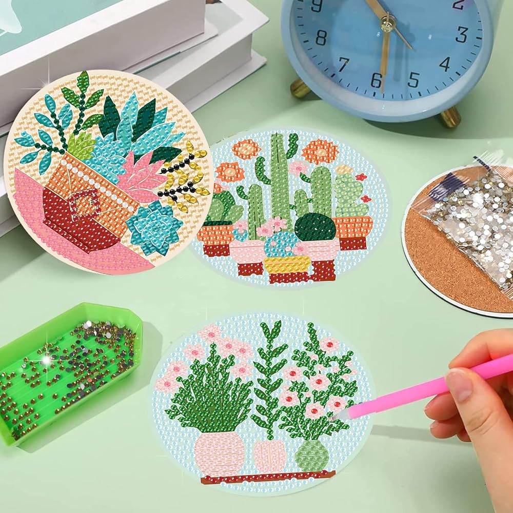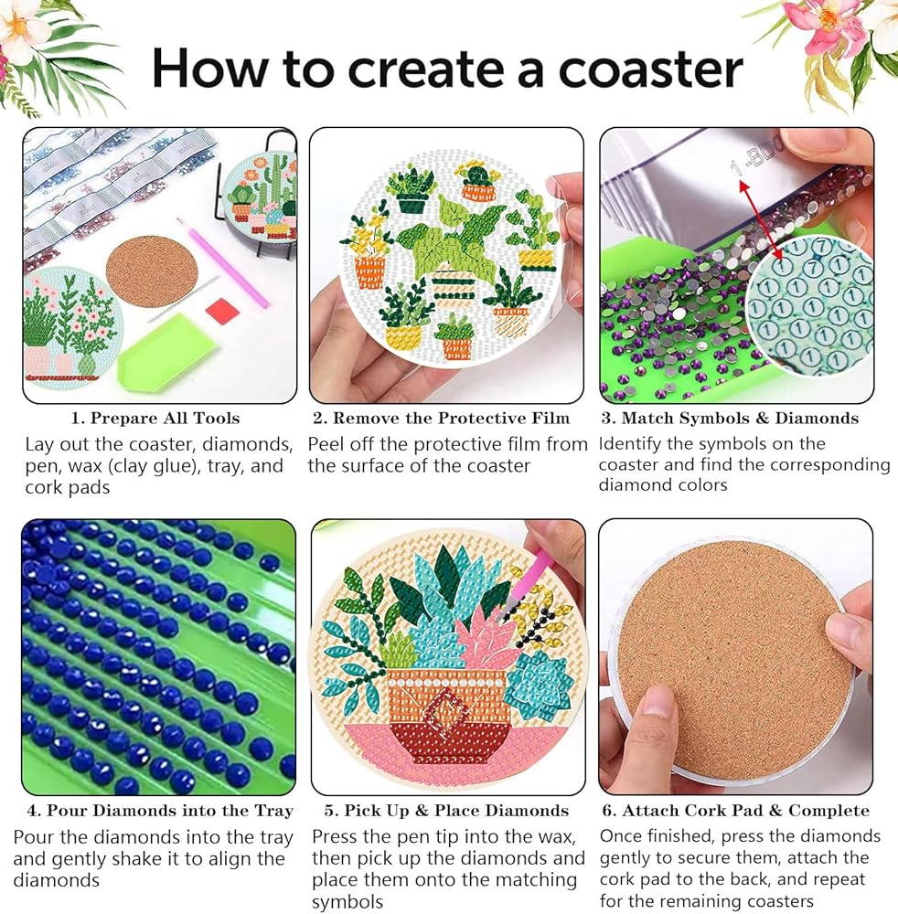EASY TO USE: Our DIY diamond painting coaster kits come with all the tools needed. Just peel off the protective film, match the diamonds to the numbers, stick them onto the coasters, and glue the cork pad to the back