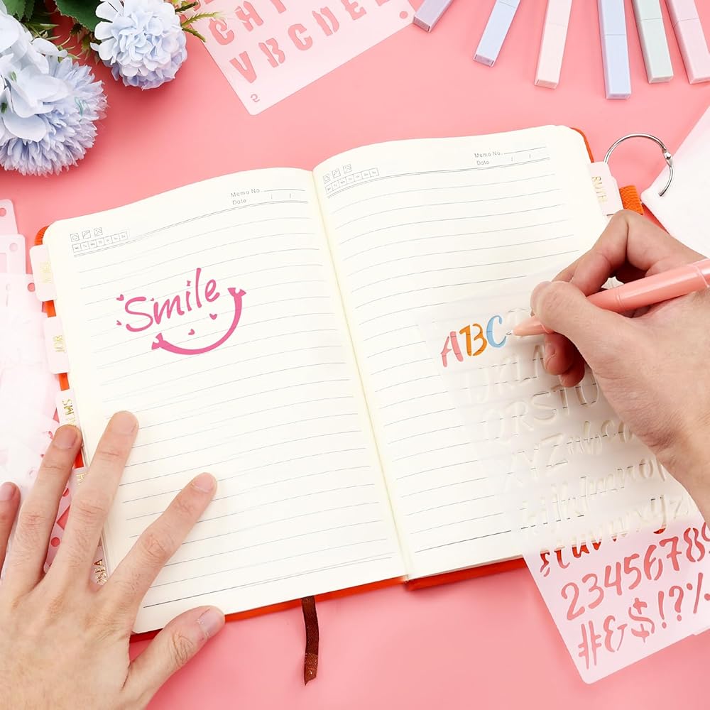 • Personalized Letter & Number: Create unique designs with our letter stencils, featuring uppercase, lowercase, and number stencils plus symbol stencils for crafts. You can easily mix and match to form names, dates, or quotes, perfect for custom stencils for spray painting or card-making. Add charm to your planner, sign, or journal with elegant cursive stencil letters and caligraphy stencil letters, making each piece reflect your personal creativity and artistic touch