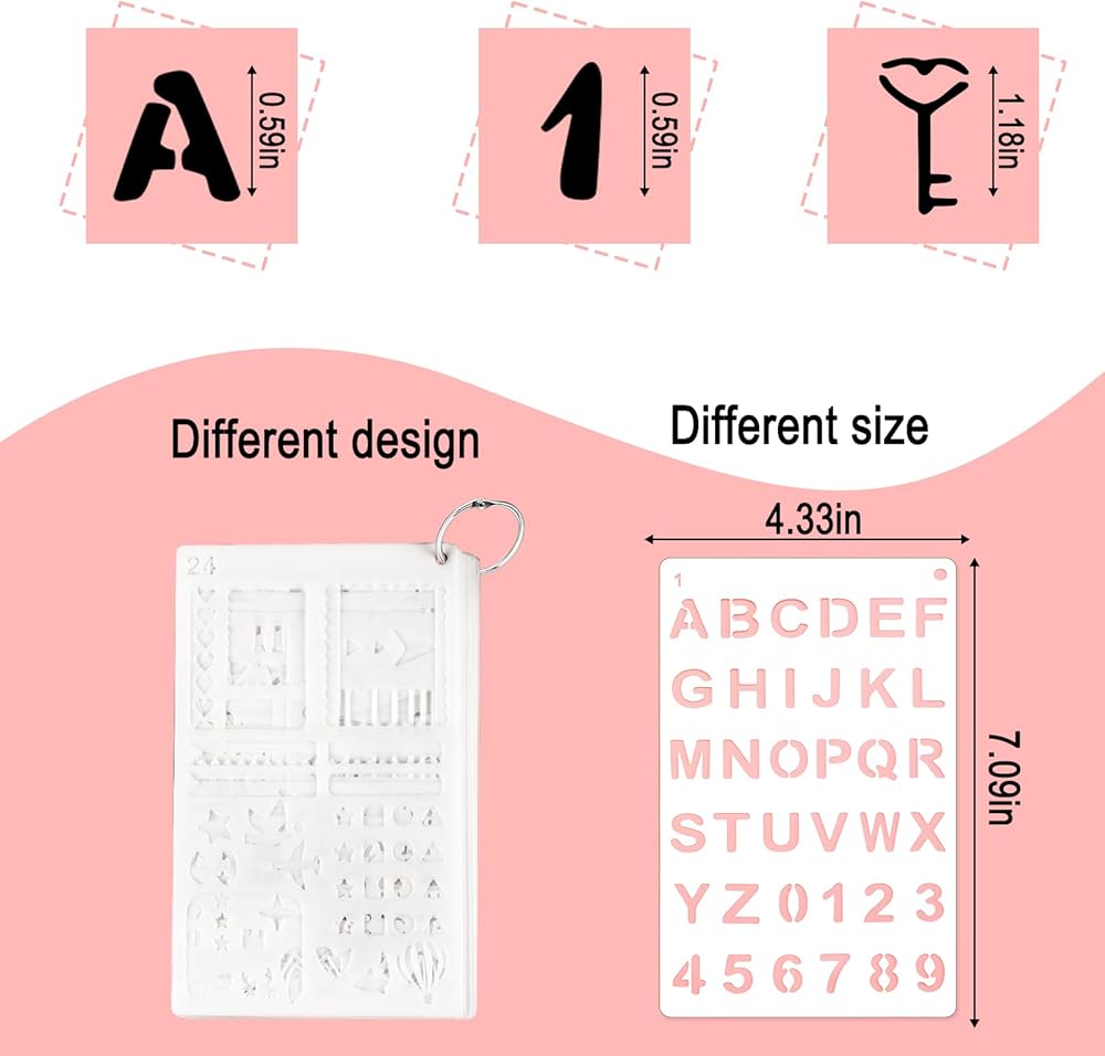• Comprehensive Set: This set includes 24 alphabet stencils, offering a full range of abc stencils, numbers, and fun patterns. Perfect for teachers, crafters, and artists, it's a versatile choice for various projects—from classroom signs to DIY home décor. These mini stencils are easy to store, lightweight, and designed to handle multiple painting tools, ensuring your creative ideas come to life with consistent, clean results every time