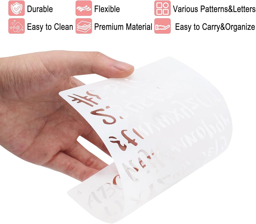• Premium & Reusable Material: Our letter stencils for painting are crafted from premium PET material, offering flexibility, durability, and smooth edges for a safe crafting experience. These stencils for crafts reusable are easy to clean and won't break or deform, making them ideal for repeated use. Whether you're decorating wood, fabric, or paper, these plastic lettering stencil sheets ensure neat, professional results that last through countless art and DIY sessions