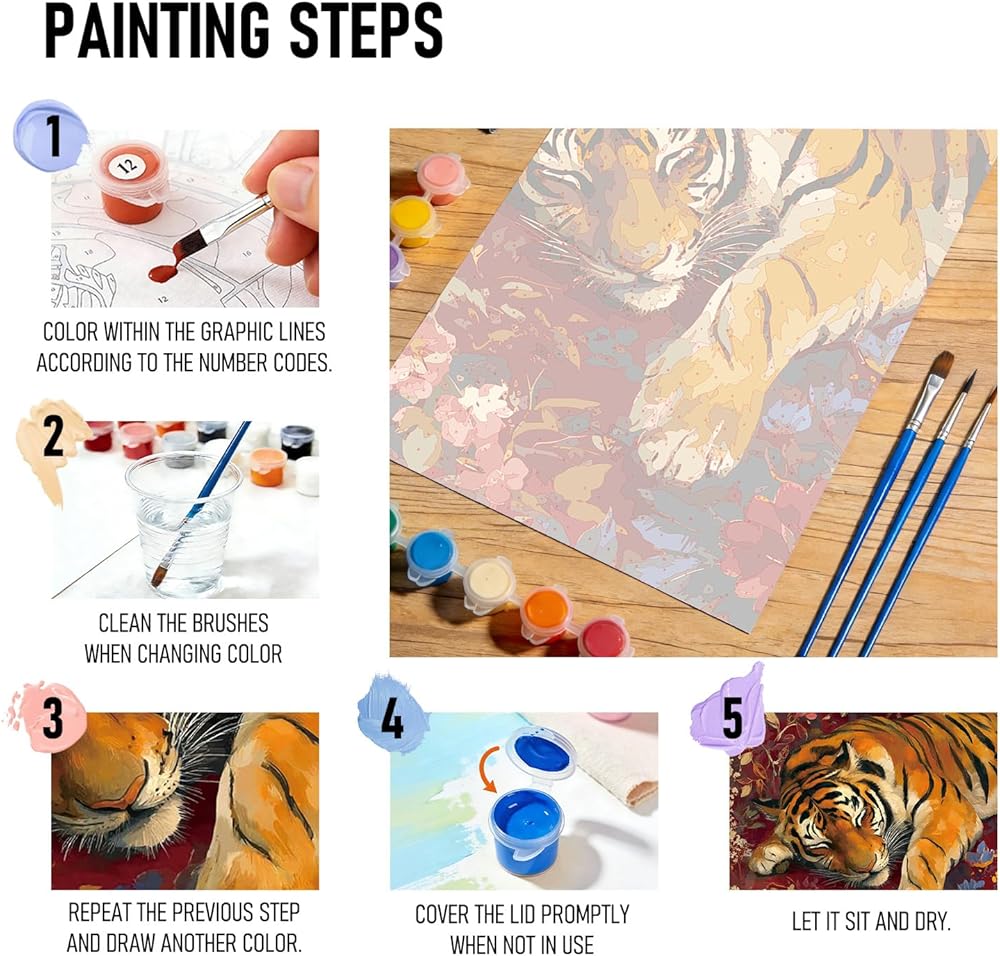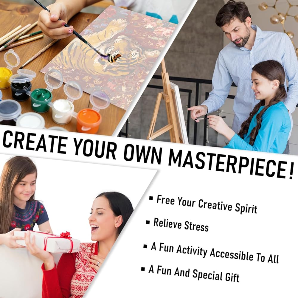 Relaxing Creative Activity: Paint by numbers encourages focus and patience while helping improve hand-eye coordination and fine motor skills, offering a calm and engaging way to unwind.