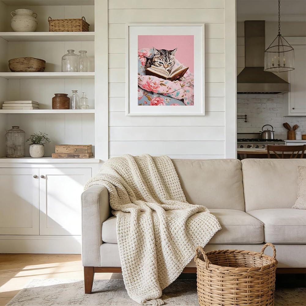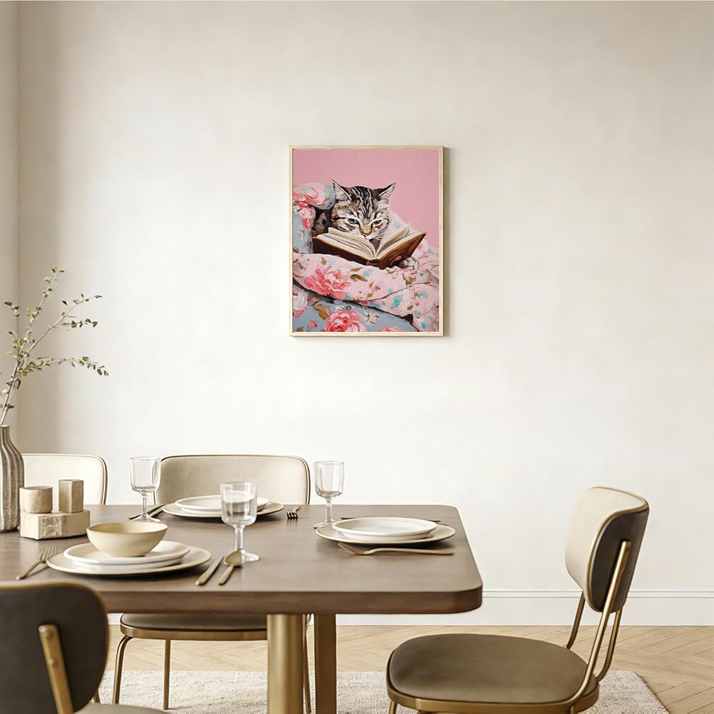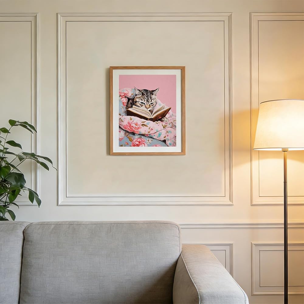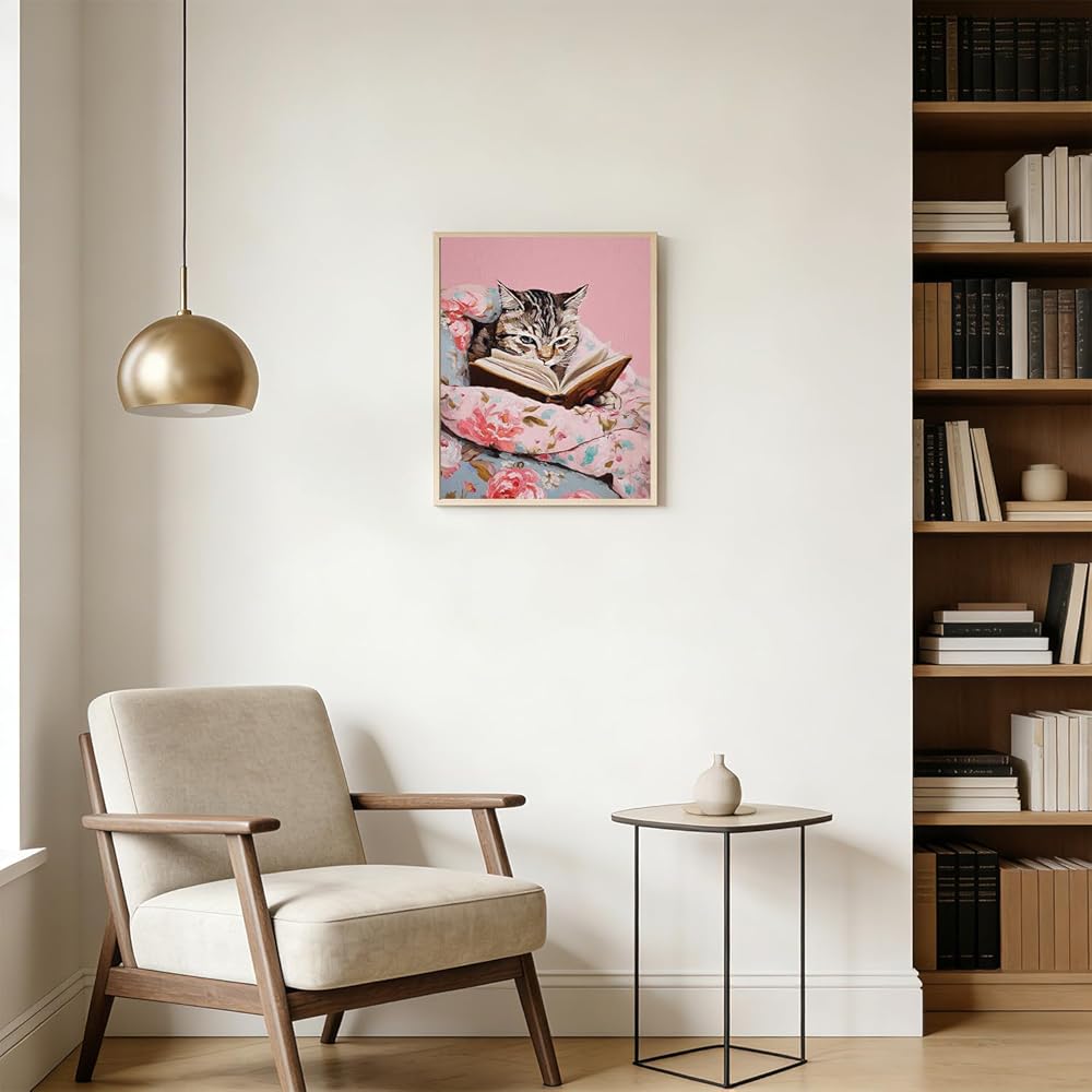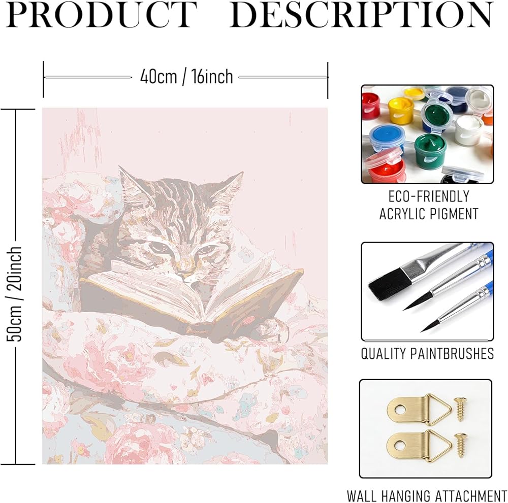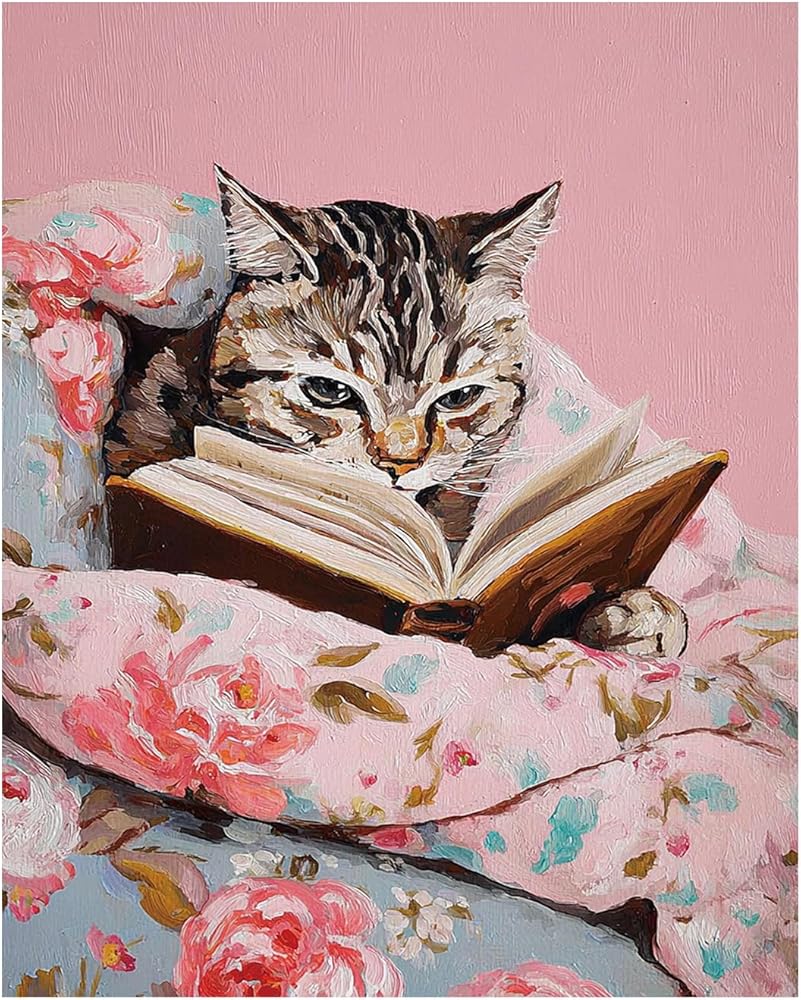 rltxbuk العتاب القط قراءة كتاب الطلاء بالأرقام عدة للبالغين المبتدئين والأطفال 4-12، القطط والكتاب عشاق الهدايا مجموعات الطلاء الزيتي DIY على قماش مؤطرة للمنزل غرفة الأطفال ديكور الشقة 16x20 في