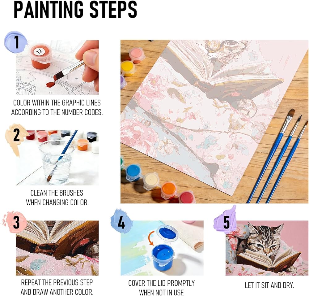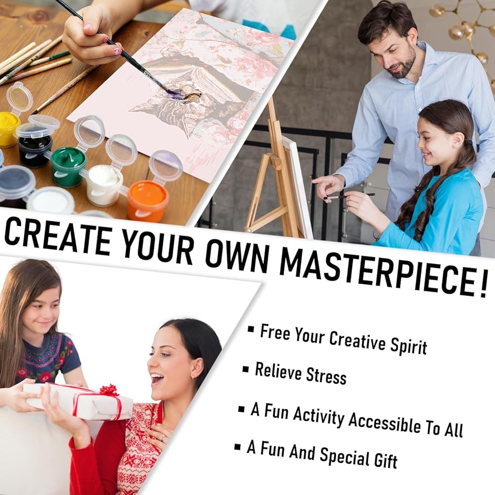Relaxing Creative Activity: Paint by numbers encourages focus and patience while helping improve hand-eye coordination and fine motor skills, offering a calm and engaging way to unwind.