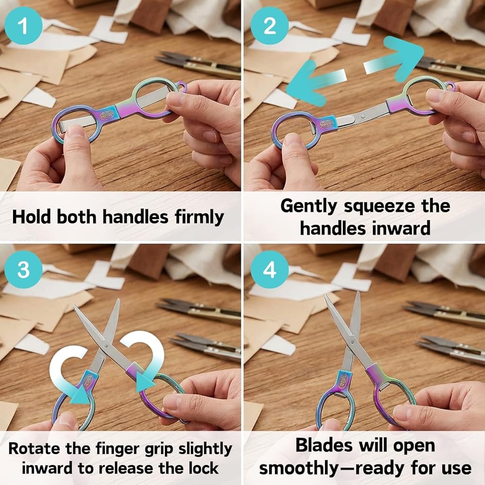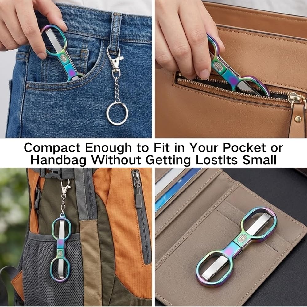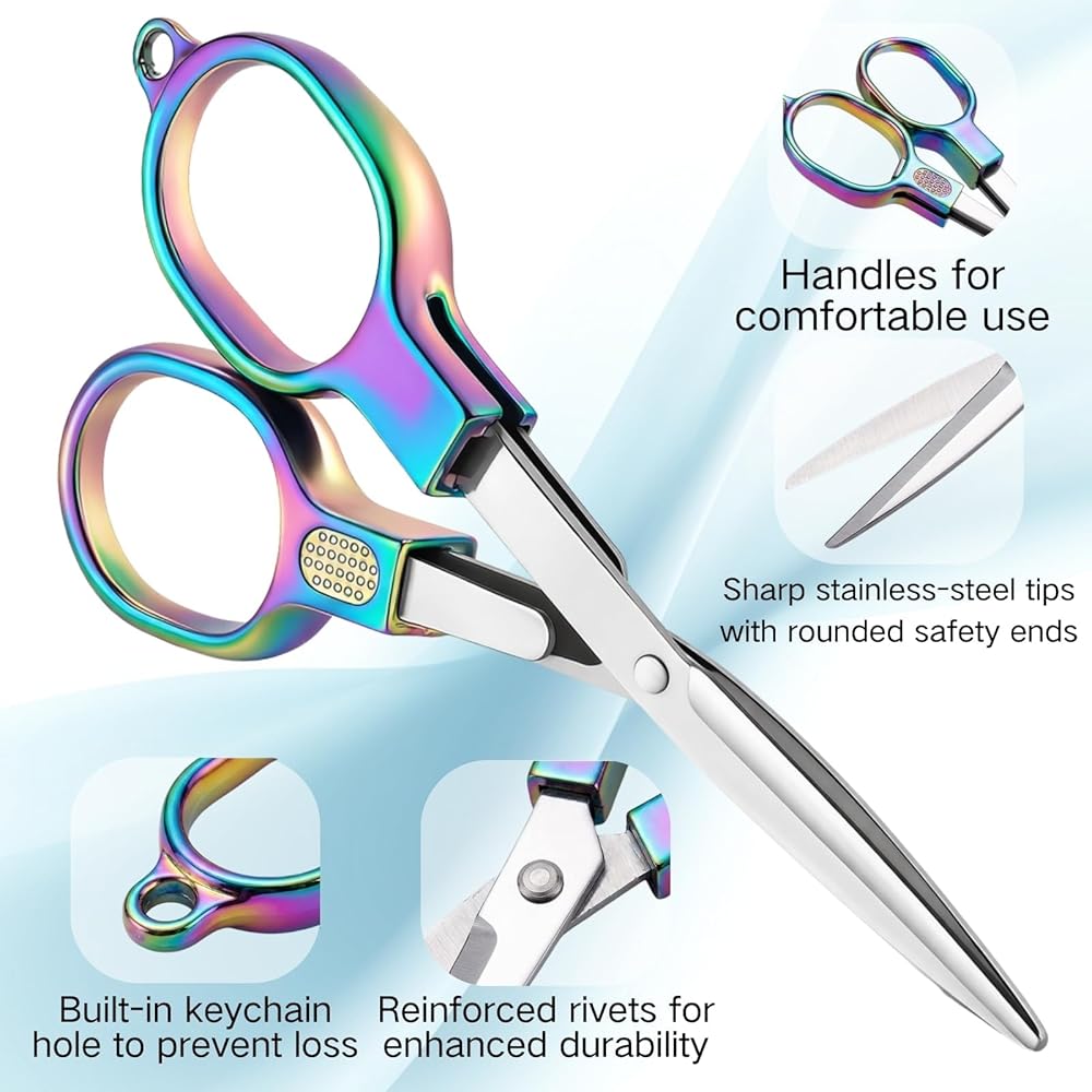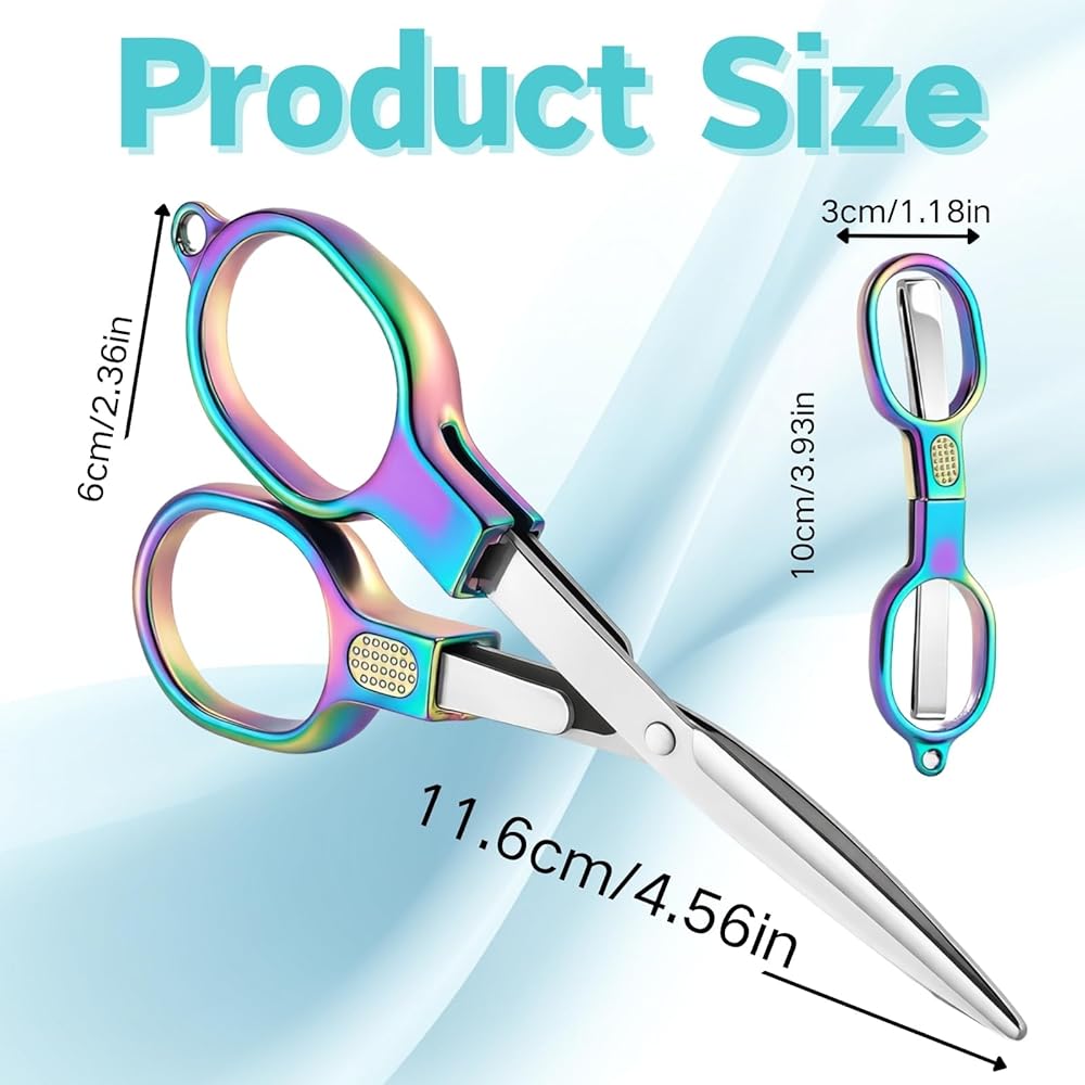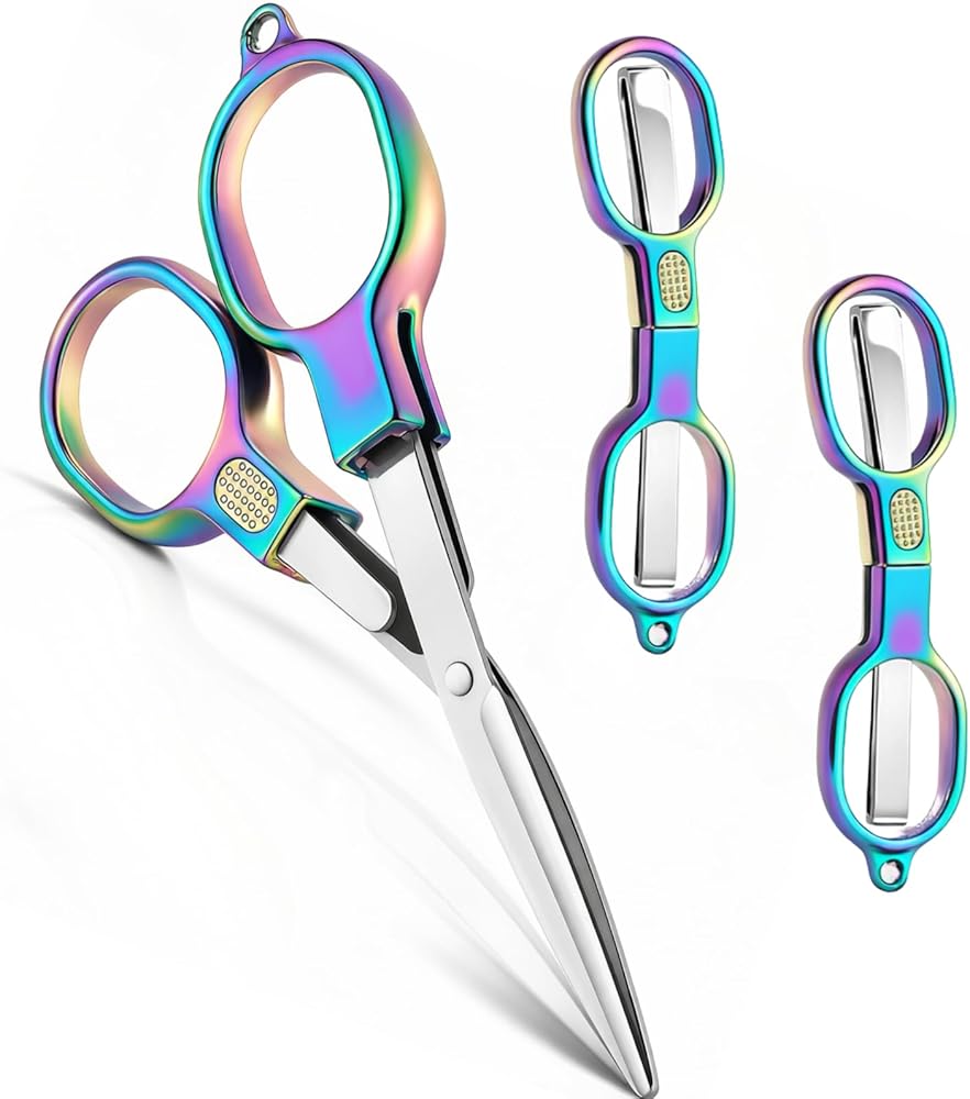 مقص قابل للطي، 3 قطع مقص صغير محمول من الفولاذ المقاوم للصدأ للسفر والخياطة والمكتب (اللون)
