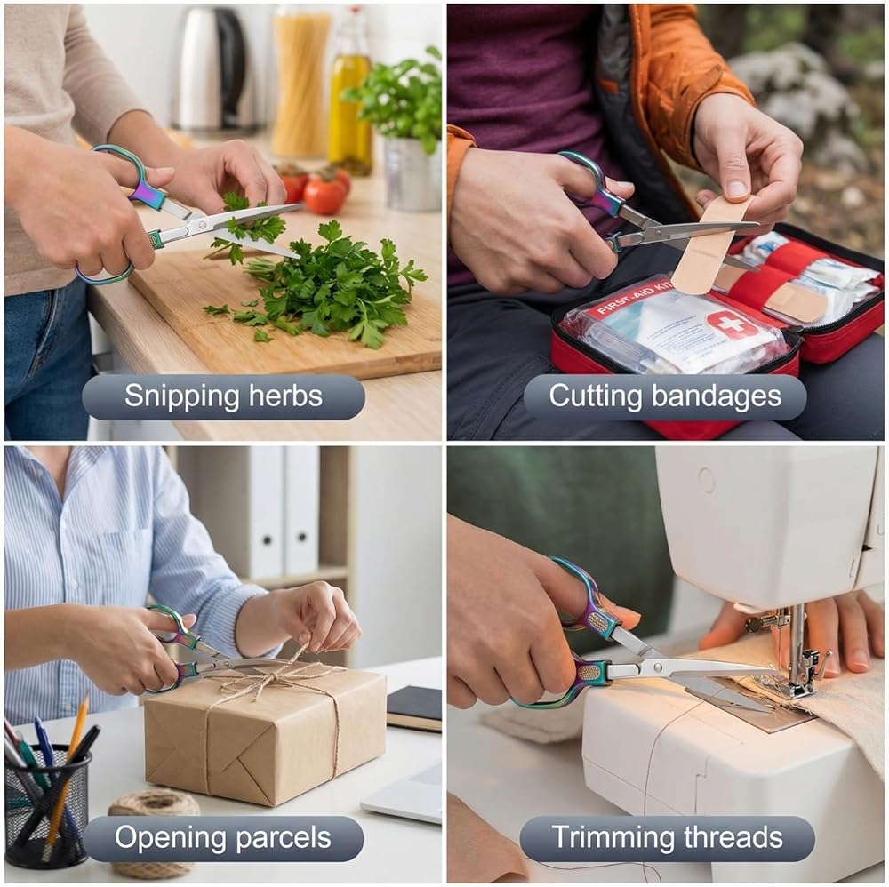 - يقطع أكثر من 10 مواد بسهولة: يتعامل مع الخيوط والنسيج والشريط والمزيد من مقص الخياطة الرائع للمهام اليدوية أو المكتبية أو المطبخ