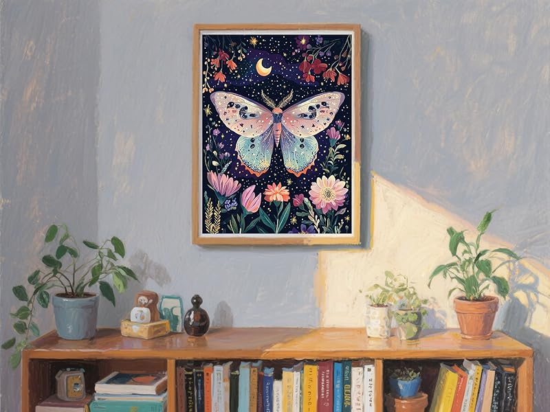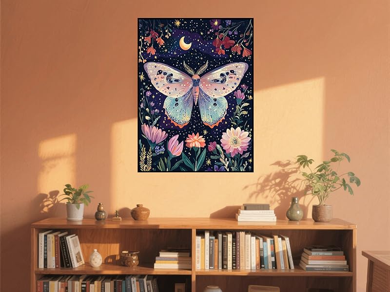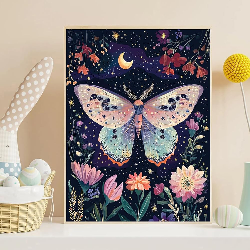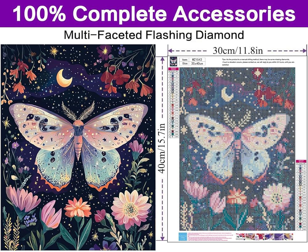 Boho Butterfly Diamond Art Kits for Adults: Simply follow the symbols on the canvas, place the sparkling diamonds, and complete it. 1 diamond painting, 1 diamond pen, 1 diamond tray, 1 red glue clay, some bags, and 30% more diamonds than needed, without a frame