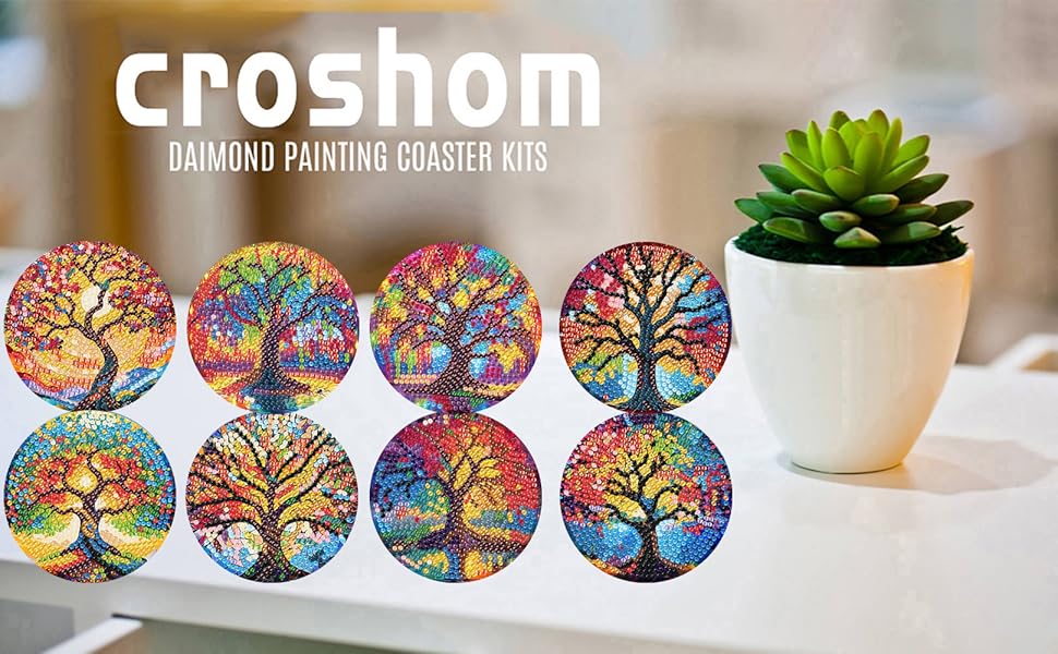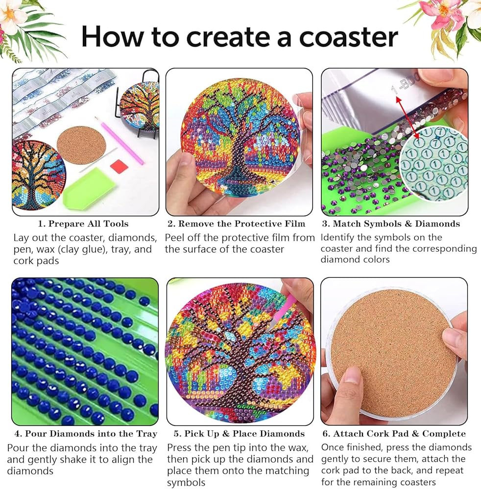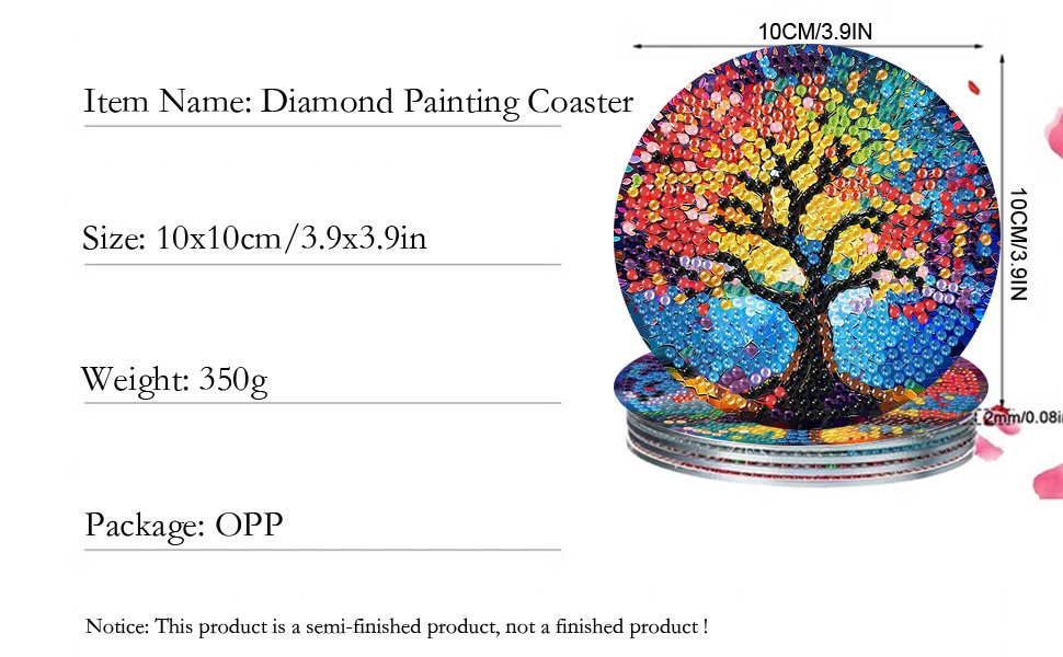 مجموعة أدوات الأكواب الفنية الماسية: سوف تحصل على 8 قطع من قواعد الأكواب الفنية الماسية لشجرة الحياة، و8 قطع من وسادات الفلين، و1 قطعة من حامل الأكواب، ومجموعة واحدة من الماس الملون، و1 قطعة من غراء الطين، و1 قطعة من القلم، و1 قطعة من صينية الماس، والتي يمكن أن تلبي احتياجاتك الإبداعية