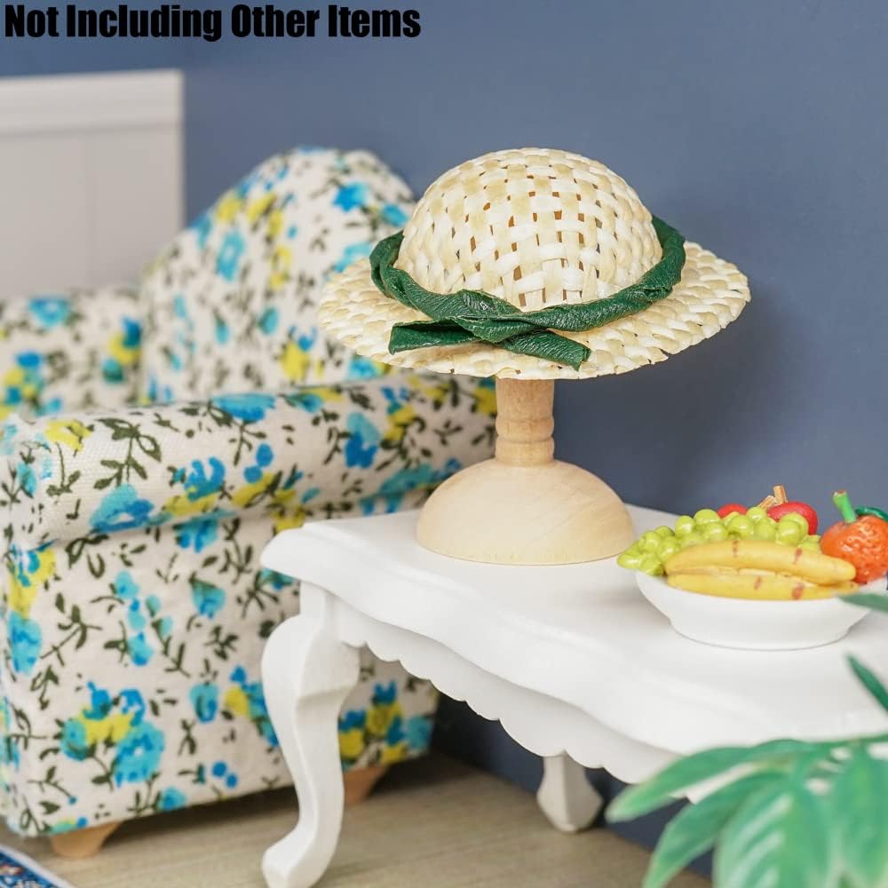 Package Included: 1x miniature straw hat, 1x hat stand (Not Including Other Items)