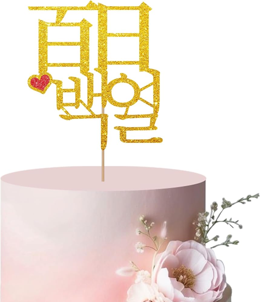 غلاف كعكة اليوم الكوري رقم 100، غلاف كعكة Baek-il الكوري للطفل، ديكور كعكة ذهبي لامع لمائة يوم لمستلزمات حفلات أعياد ميلاد الطفل