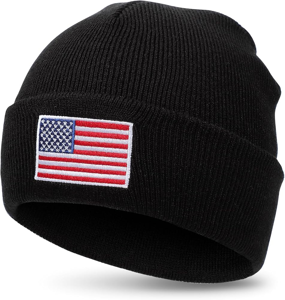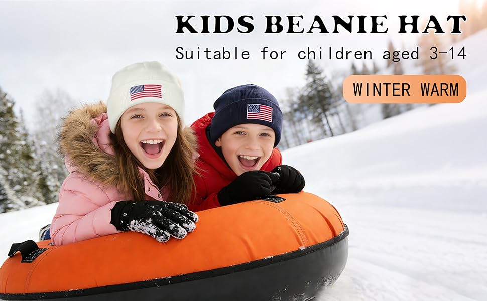 【قبعة صغيرة صديقة للبشرة】مصنوعة من قطن بولي قطن فائق النعومة وعالي الجودة، تضمن قبعات الأطفال المطرزة بالعلم الأمريكي هذه الدفء والراحة طوال اليوم في طقس الشتاء القاسي للأطفال والأولاد والبنات.