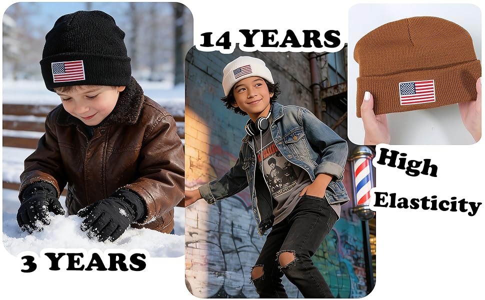 【نمط شتوي متعدد الاستخدامات】متوفرة بألوان متعددة نابضة بالحياة، هذه القبعات المريحة المحبوكة بالعلم الأمريكي تتطابق بسهولة مع الملابس لإبقاء الأطفال الصغار دافئين بشكل أنيق خلال الأيام الثلجية، مما يجعلها إكسسوارات يومية مبهجة للمدرسة أو اللعب.