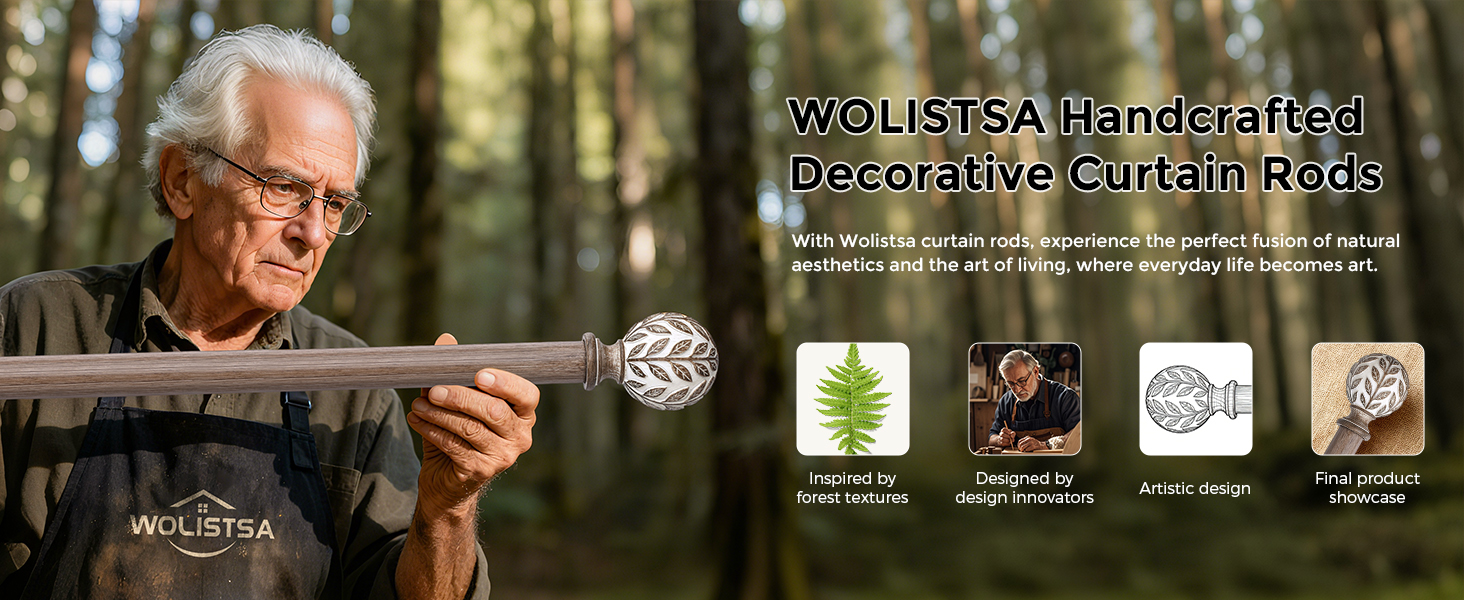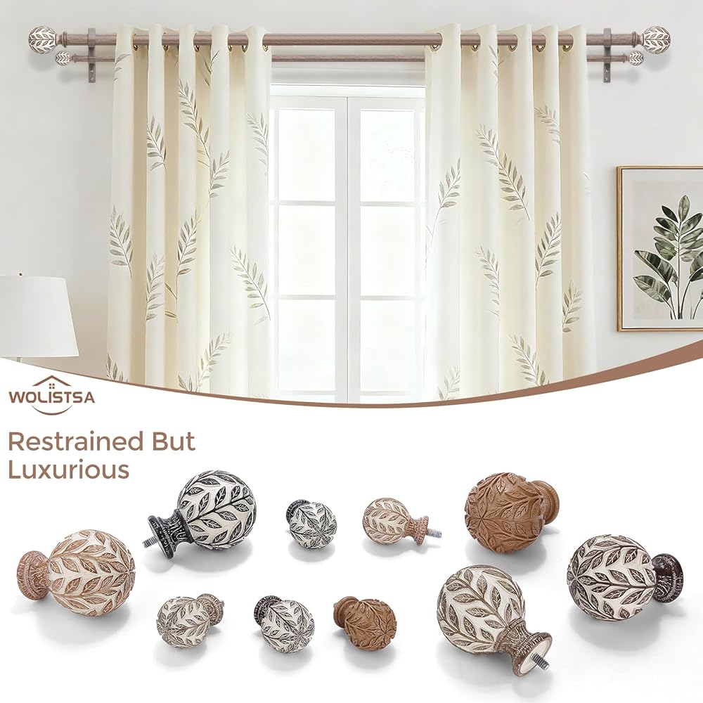 [لمسات نهائية من أوراق الخشب المحبب المصنوعة يدويًا] تم تصميم نمط الأوراق من اللمسات النهائية لأوراق الخشب المحبب على يد فريق تصميم محترف، ثم تم تصنيعها على يد فريق من ذوي الخبرة في الصناعة اليدوية. تقدم كل زخرفة علوية لقضبان الستارة المزدوجة المزخرفة تأثيرًا مقلدًا للخشب المرسوم يدويًا. تجلب قضبان ستائر بوهو إحساسًا بالهدوء والبساطة من الغابة إلى منزلك