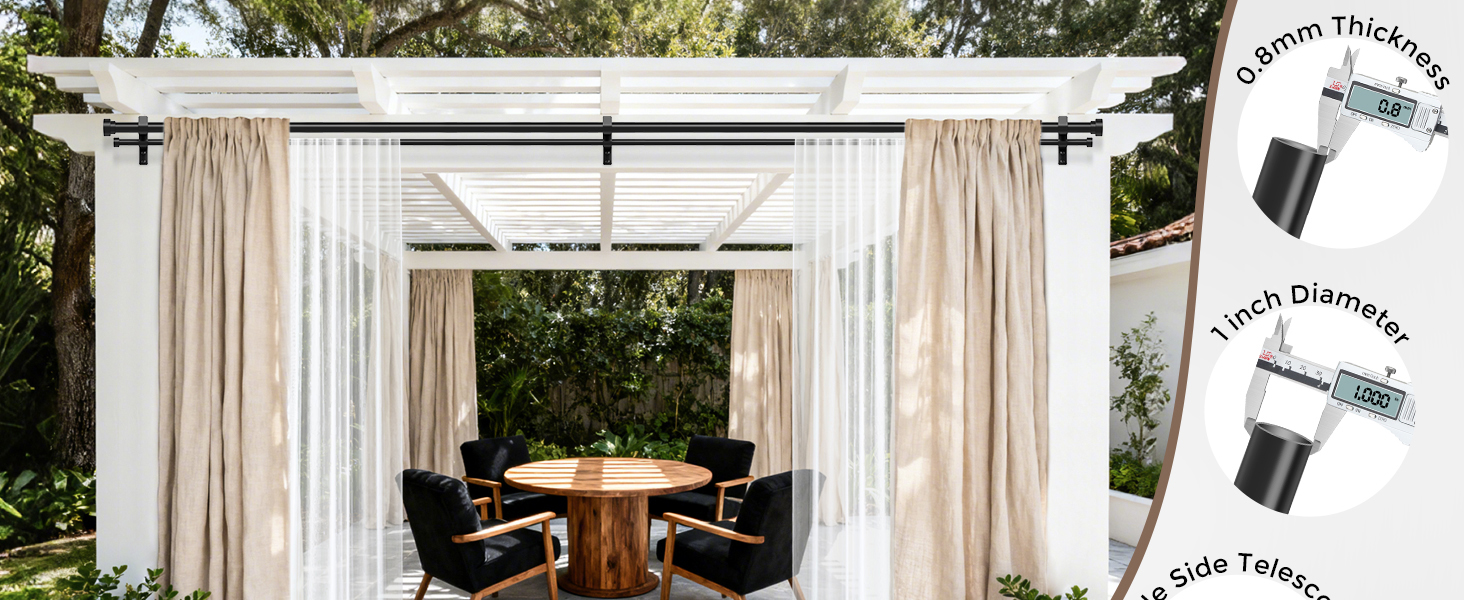 [STURDY AND DURABLE]: Built for strength, Wolistsa heavy duty double curtain rods are made of high quality carbon steel with a 0.5% carbon content. The double drapery rods have a 1" diameter front rod and 5/8" back rod with a 0.8mm wall thickness including two premium mental ends that can hold up to 40 lbs. Compared to other 7/8" diameter front rod, 1/2" back rod and 0.5mm thickness double curtain rods for windows on the market, our dual curtain rod redefine "heavy duty" with stronger materials and thicker rods