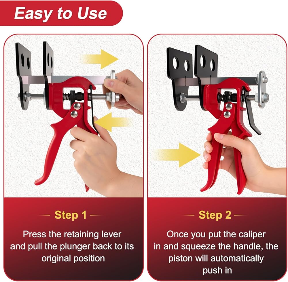 تشغيل بدون جهد: أداة توزيع فرجار الفرامل سهلة الاستخدام، قم بإدخالها في الفرجار، واضغط على المقبض حتى يلمس المكبس الوسادة الداخلية، واستمر في الضغط لضغط المكابس. حتى المبتدئين يمكنهم إتقانها بسرعة