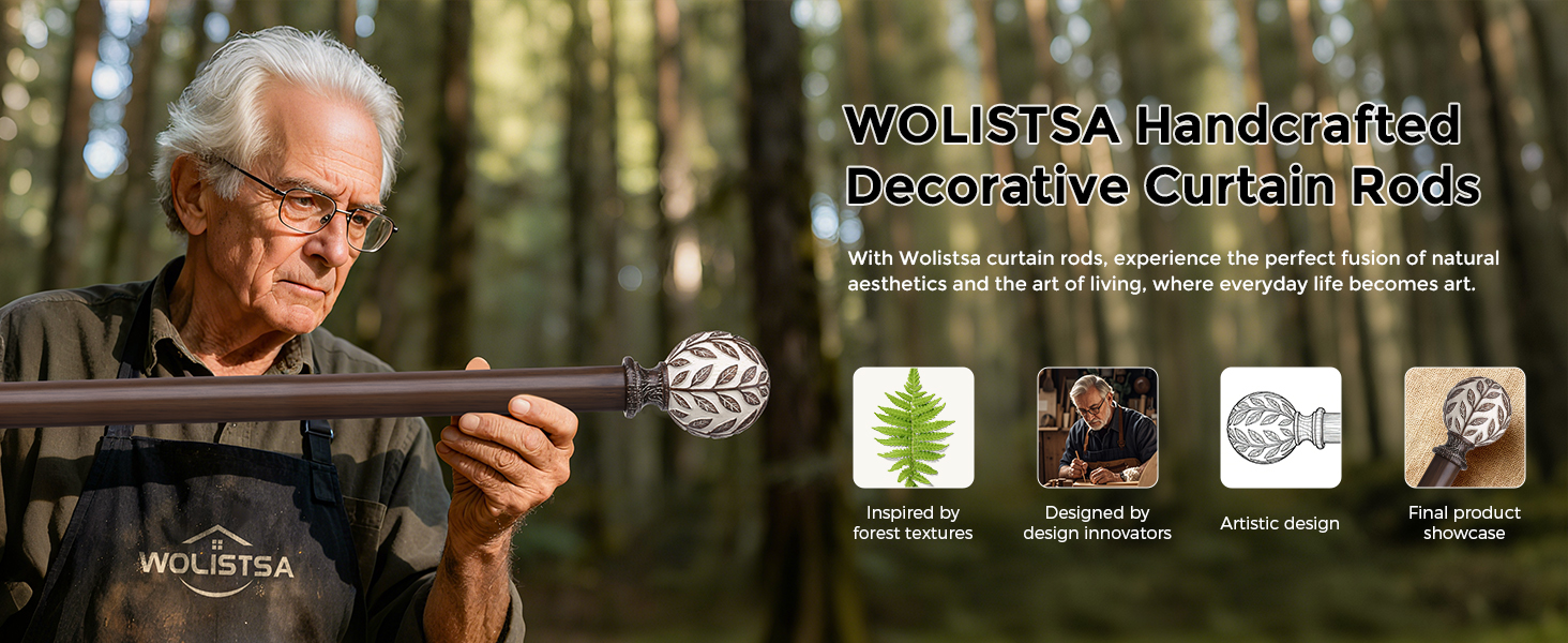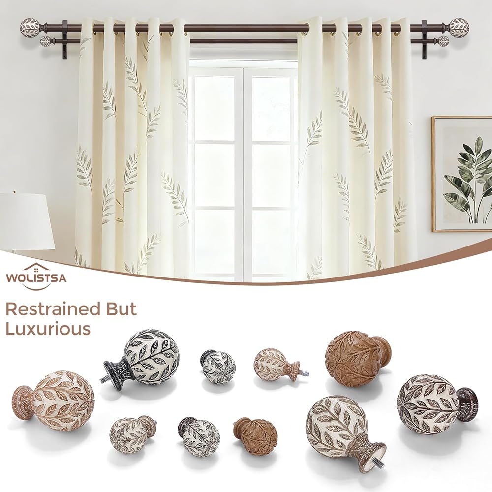 [لمسات نهائية من أوراق الخشب المحبب مصنوعة يدويًا] تم تصميم نمط أوراق اللمسات النهائية من أوراق خشب الجوز على يد فريق تصميم محترف، ثم تم تصنيعه على يد فريق من ذوي الخبرة في الصناعة اليدوية. تقدم كل زخرفة علوية لقضبان الستارة المزدوجة المزخرفة تأثيرًا مقلدًا للخشب المرسوم يدويًا. تجلب قضبان ستائر بوهو إحساسًا بالهدوء والبساطة من الغابة إلى منزلك