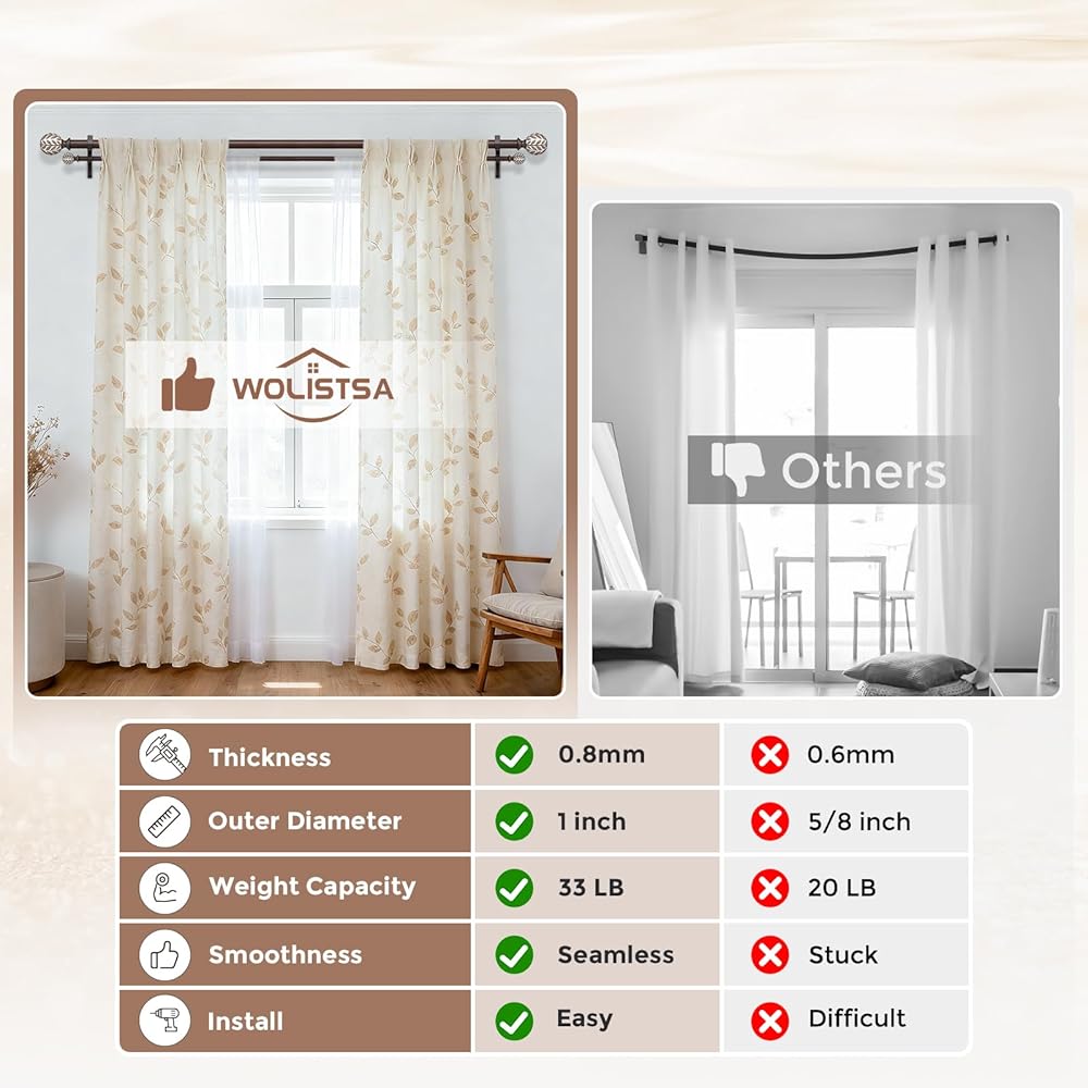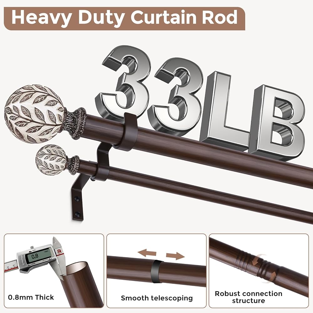 [شديدة التحمل ومصممة لتدوم طويلاً] قضبان الستارة الريفية المزدوجة الخاصة بنا مصنوعة من الفولاذ الكربوني عالي الجودة (0.5% كربون). يبلغ قطر القضيب الأمامي لقضبان الستارة ذات الطبقة المزدوجة 1 بوصة، وقطر القضيب الخلفي 5/8 بوصة، وسمك القضيب 0.8 ملم. يمكن لهذا التصميم لقضيب معالجة النوافذ القوي أن يتحمل وزنًا يصل إلى 33 رطلاً.