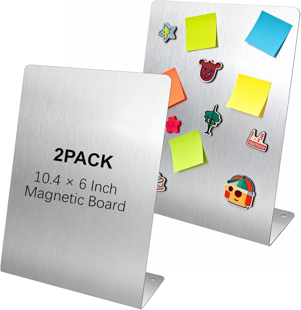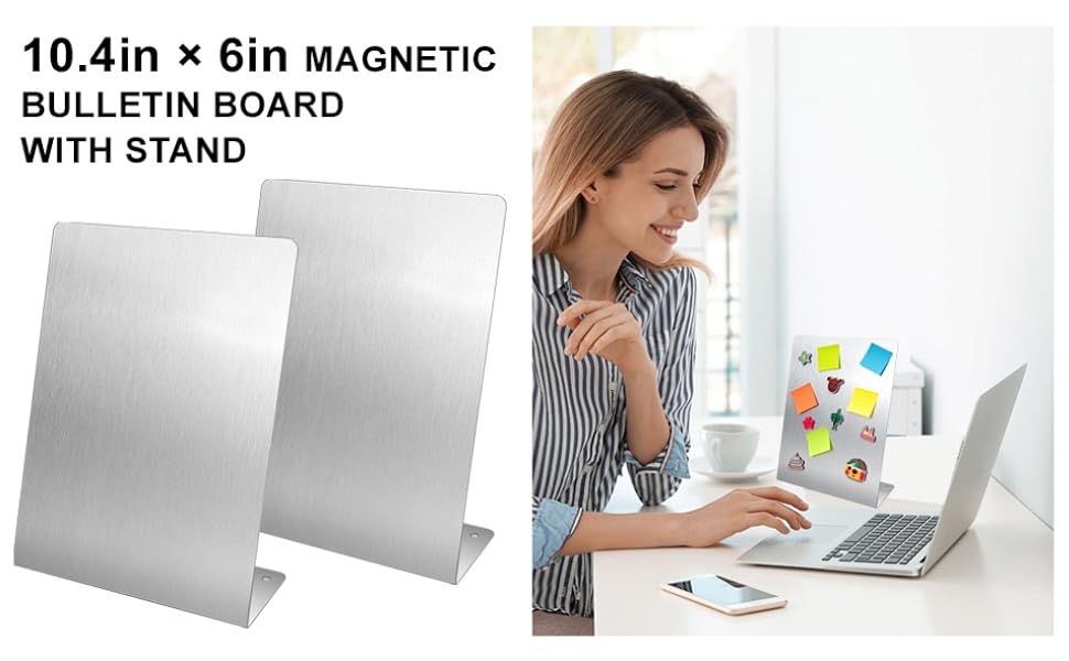 2 قطعة لوحة إعلانات مغناطيسية مع حامل معدني لسطح الطاولة لوحة مذكرة مغناطيسية لوحة حامل حامل عرض من الفولاذ المقاوم للصدأ للمكتب والمنزل والمطبخ والمدرسة 10.4 × 6 بوصة