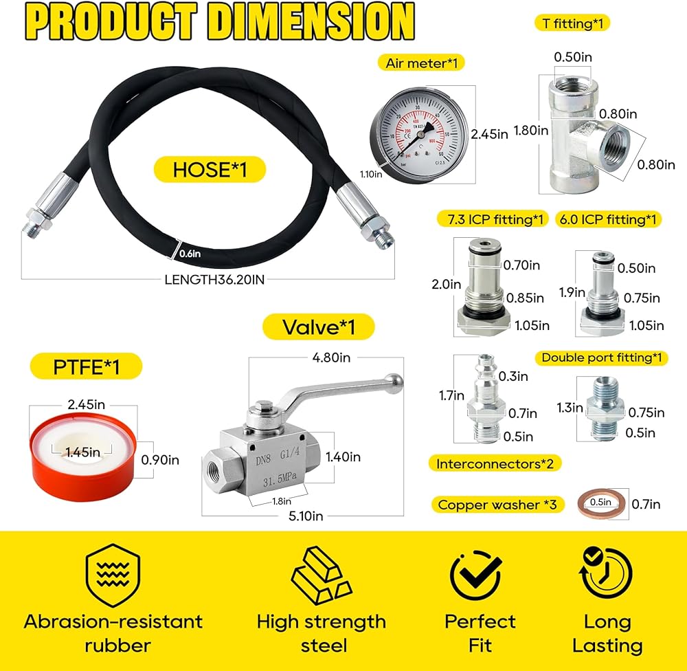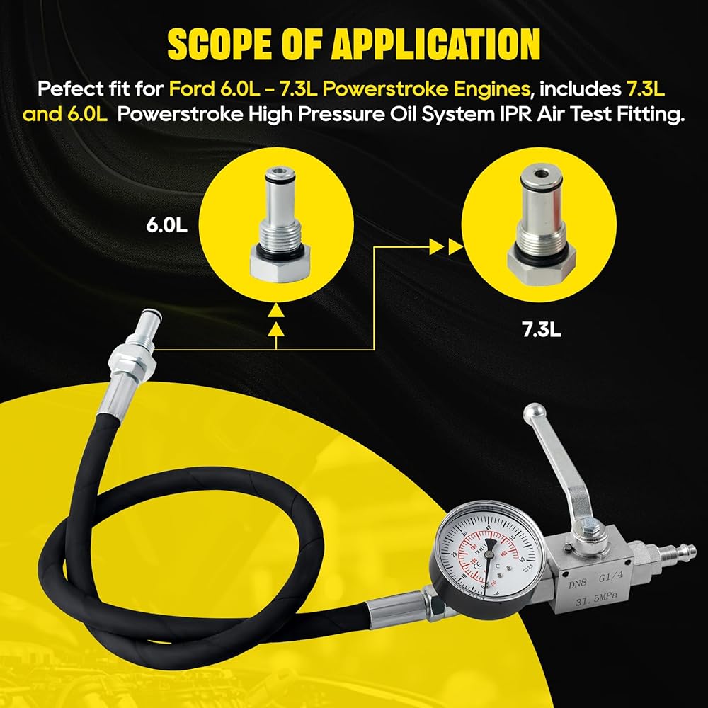 Application:6.0 High Pressure Oil System Teste, Fits for Ford 6.0L - 7.3LPowerstroke Engines,Includes 7.3L and 6.0LPowerstroke High Pressure Oil System IPR Air Test Fitting.