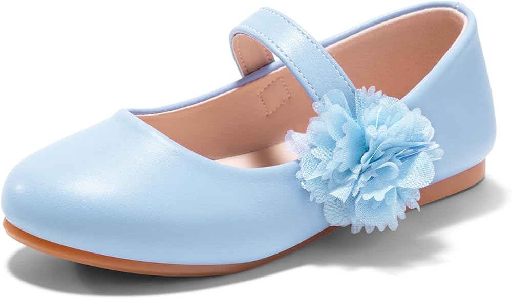 Haloumoning Girls Mary Jane Flats Ballet Dress Shoes Kids Flower Slip on Wedding Party Princess Shoes