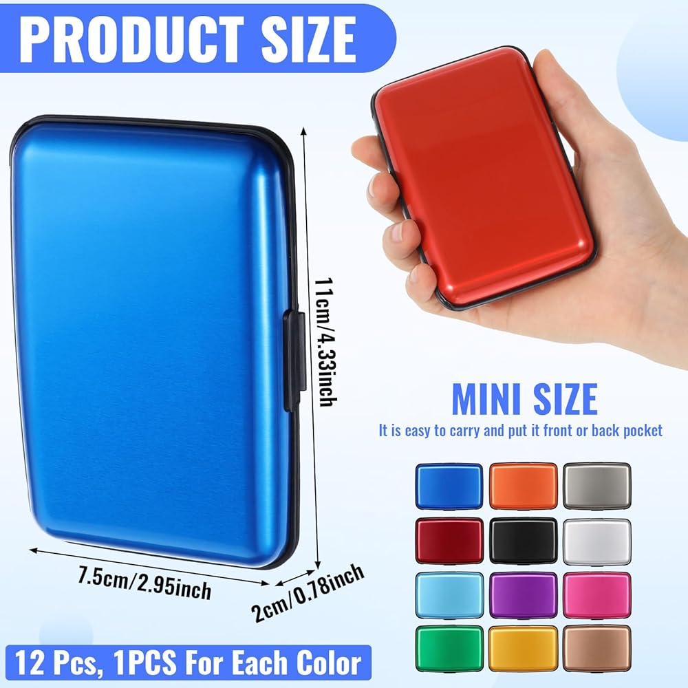 12 Pcs RFID Blocking Credit Cards Holder Mini Slim Aluminum Wallet Metal Business Card Case Credit Wallet Protector ID Hard Case for Women Men, Multicolor