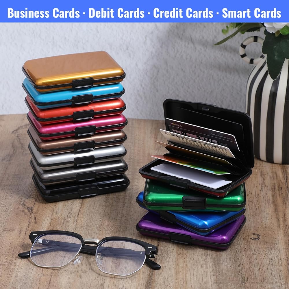 Compact and Portable: Each credit card holder measures approximately 4.33 inches (about 11 cm). It features 6 card slots, accommodating more than 8 credit cards. Its lightweight design easily fits into a pocket or wallet, and the rounded corners won't scratch clothing.
