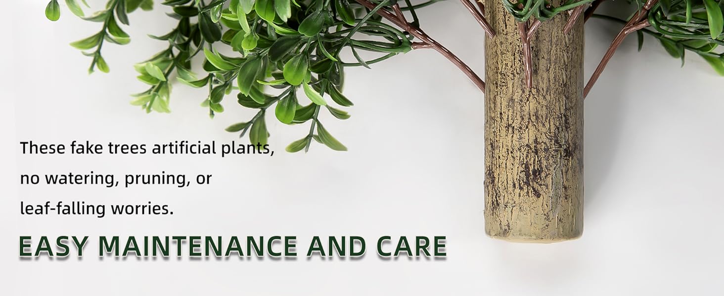 سهولة الصيانة والعناية: نباتات صناعية من الأشجار المزيفة، لا داعي للقلق بشأن الري أو التقليم أو سقوط الأوراق. إذا انفصلت الأوراق أثناء فتح الصندوق، فأعد توصيلها بسهولة بالفرع.