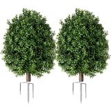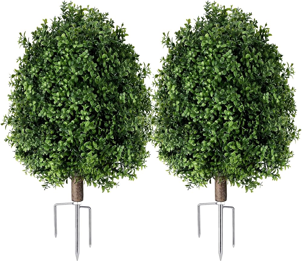 qcqhdu الاصطناعي خشب البقس توبياري الكرة بوش للخارجية، 26.8 "أشجار وهمية النباتات دائمة الخضرة مع ارتفاع الأرض، الشجيرات الخضراء فو مقاومة للأشعة فوق البنفسجية للداخلية، حديقة، ساحة، الشرفة الأمامية، ديكور الفناء، مجموعة من 2