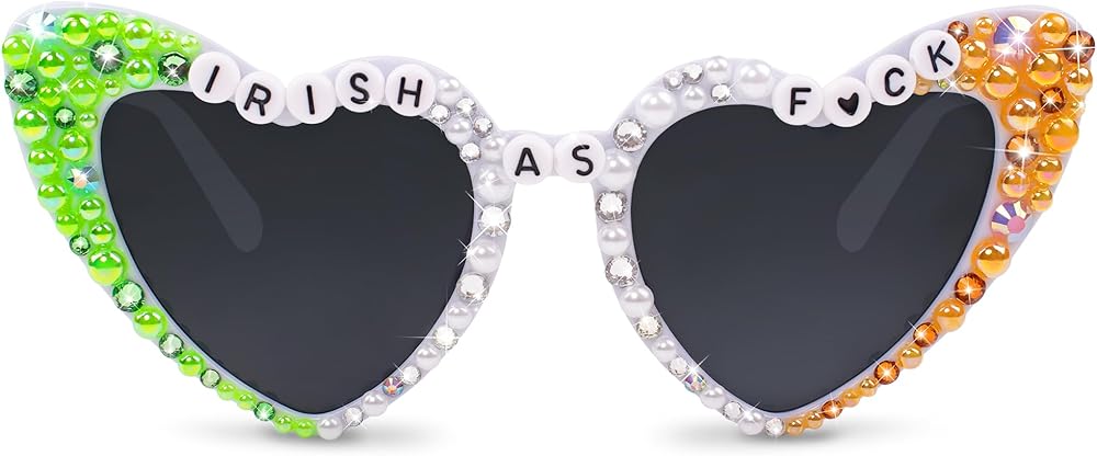 【نظارات عيد القديس باتريك الممتعة والاحتفالية】- استعد للاحتفال بعيد القديس باتريك بأناقة مع نظارتنا الخضراء النابضة بالحياة! هذه النظارات مزينة بعبارة مرحة "IRISH AS FUCK" لإضفاء المزيد من الحظ والسحر لديكورات عيد القديس باتريك.