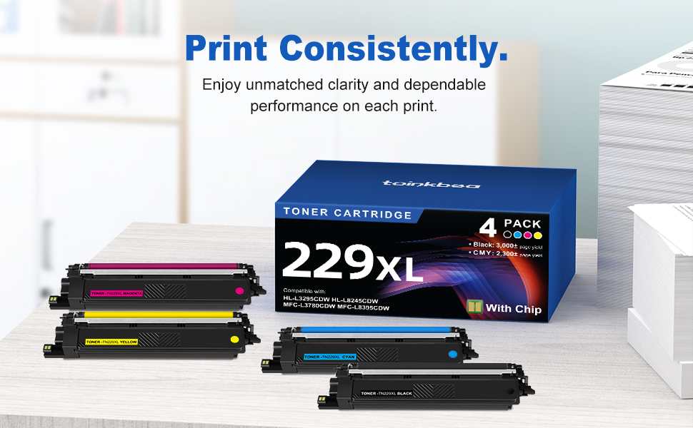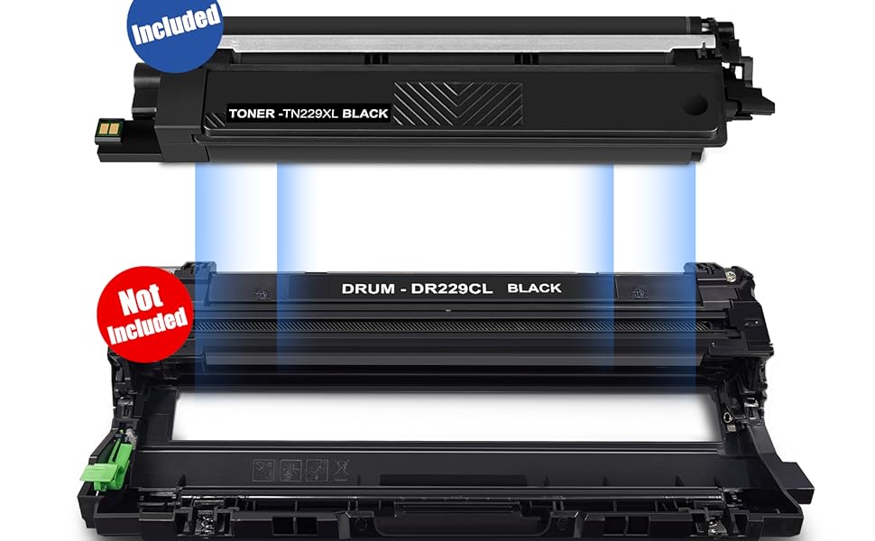 • تشمل العبوة: 4 خراطيش حبر TN229XL TN229 (1 × خرطوشة حبر أسود TN229XLBK، 1 × خرطوشة حبر سماوي TN229XLC، 1 × خرطوشة حبر أصفر TN229XLY، 1 × خرطوشة حبر أرجواني TN229XLM) (ملاحظة: حبر TN229 XL فقط، وحدة الطبل DR229 غير متضمنة)