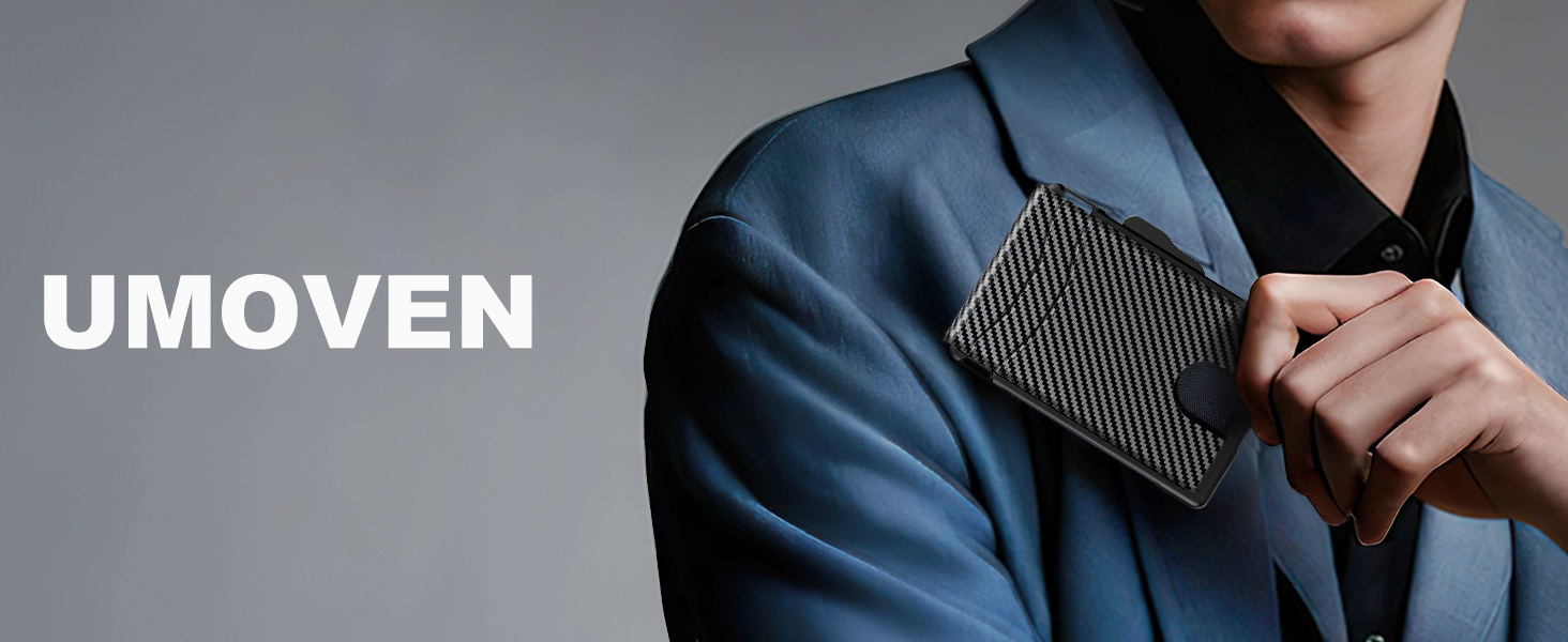 umoven Men's Minimalist Wallet – Slim RFID Blocking Bifold Leather Wallet with Money Clip & Card Slots (iOS Tracking)