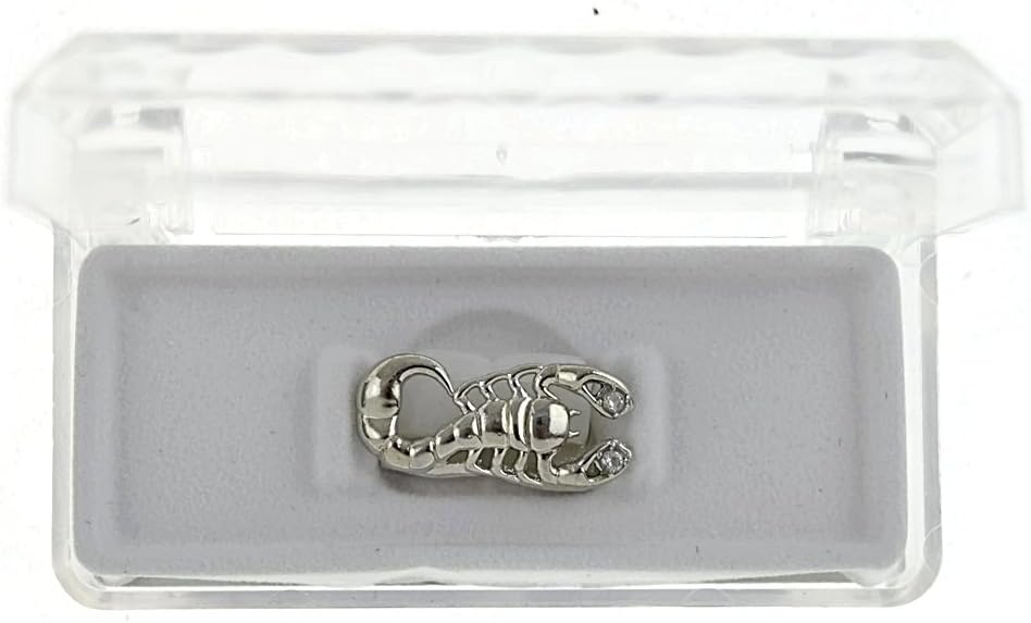Get your "beast mode" on with our Scorpion, rhodium plated, iced teeth grillz. Original Best Grillz brand, made in Korea. Includes easy instructions and silicone molding piece to fit your grillz in just minutes.