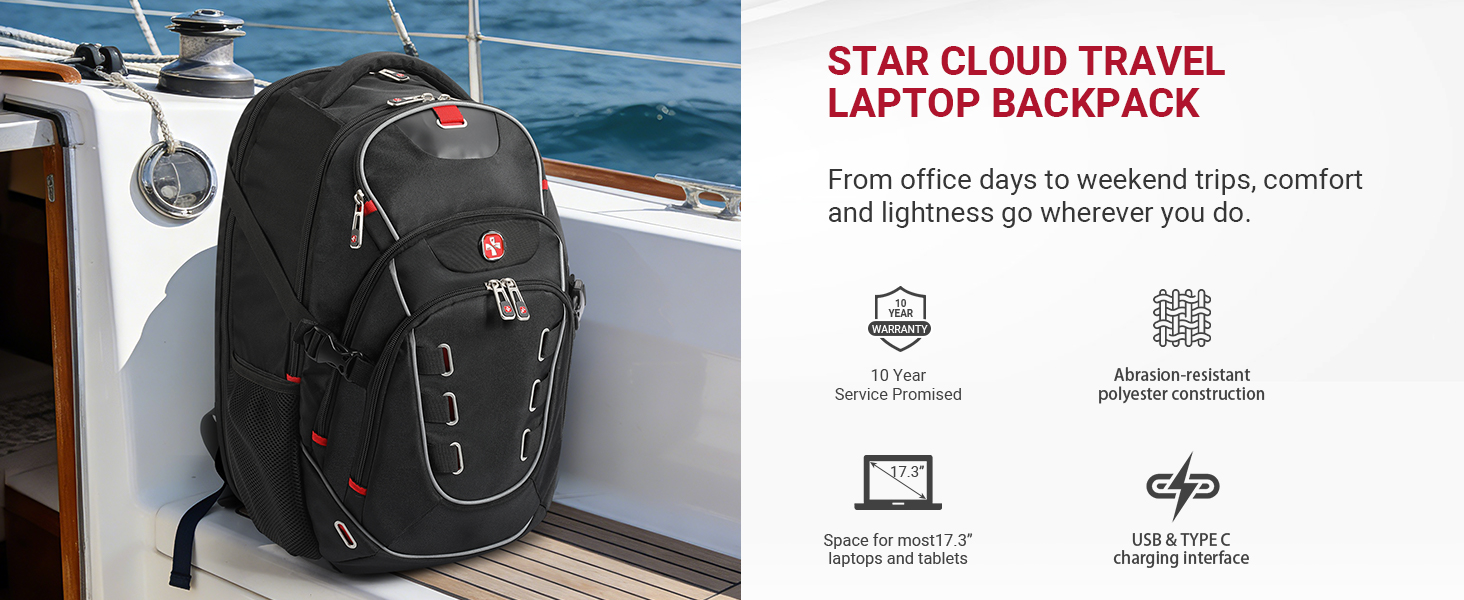 حقيبة ظهر للكمبيوتر المحمول مقاس 17.3 بوصة للرجال من ستار كلاود، حقيبة ظهر للكمبيوتر المحمول للسفر مع شحن USB ونوع C، حقيبة ظهر للأعمال سهلة الحمل من إدارة أمن المواصلات الأمريكية، حقيبة ظهر كبيرة للتكنولوجيا للعمل والسفر